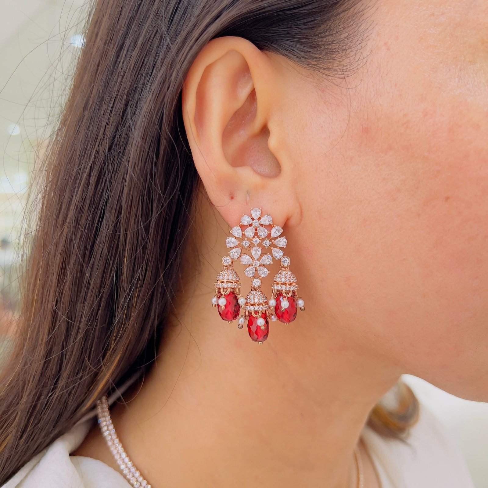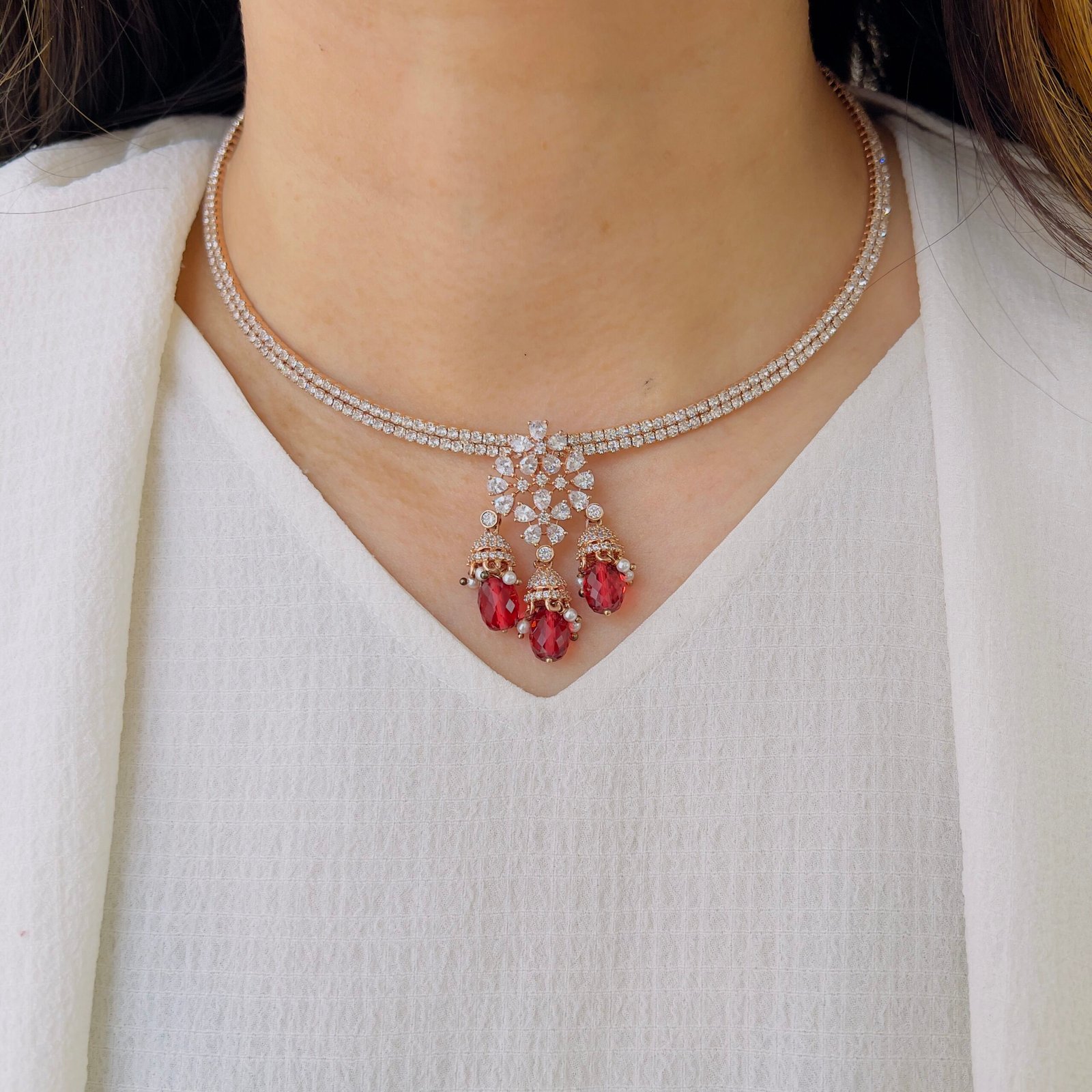 A beautifully designed diamond pendant set showcasing fine craftsmanship and delicate movement, the detailed pendant creates a luxurious focal point, adding sophistication and charm to special occasion ensembles.