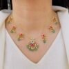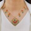 This invisible chain necklace blends modern minimalism with traditional design, Featuring a vibrant pendant and pearl drops, it sits gently on the neckline and offers all-day comfort with timeless festive appeal.
