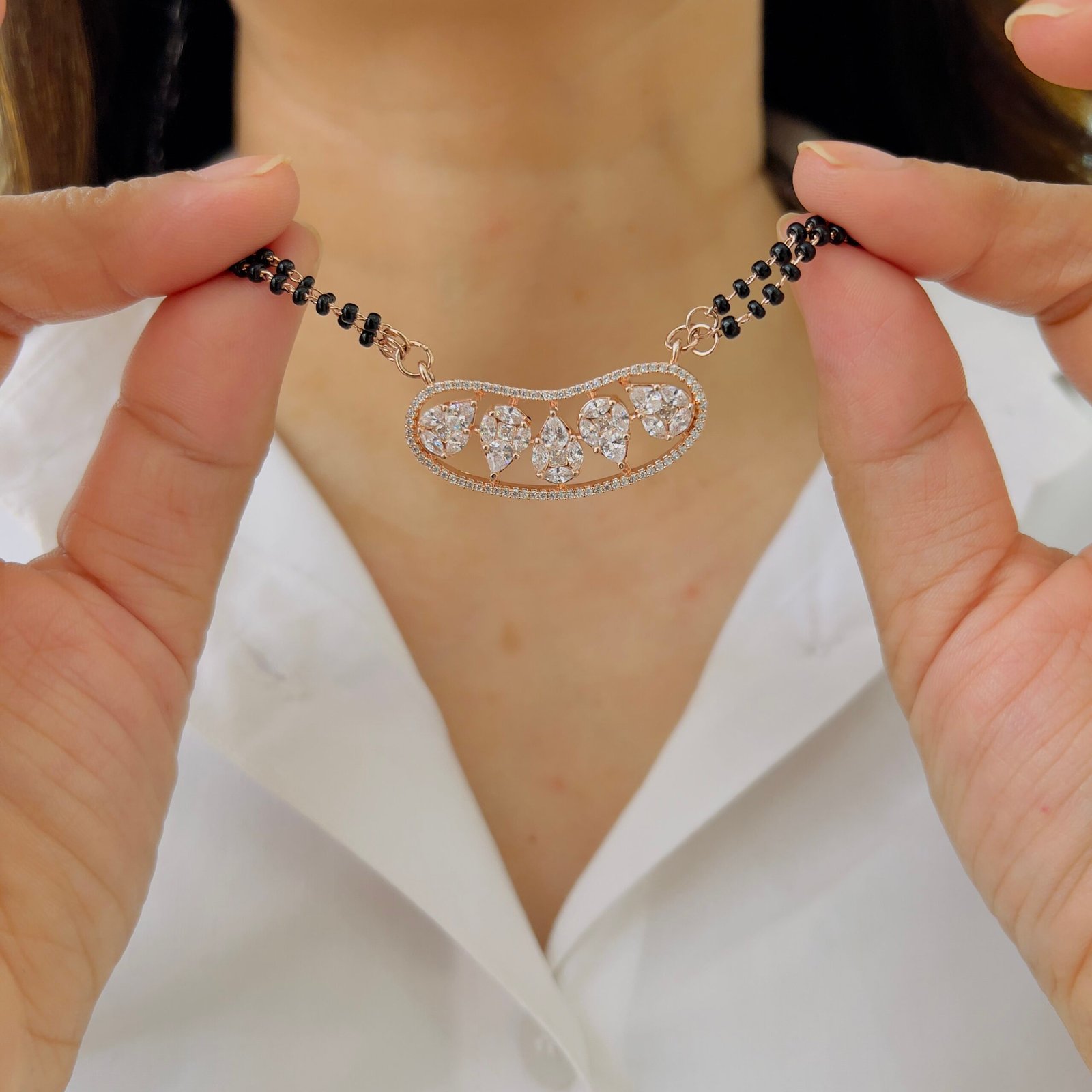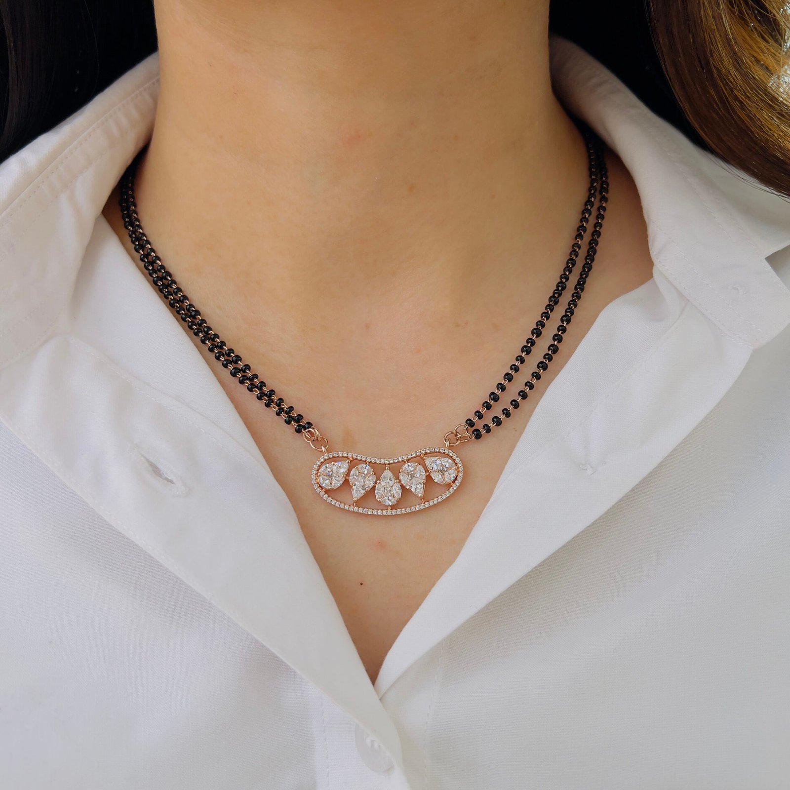 Crafted for modern women, this 18K gold plated mangalsutra offers elegant shine with its stones, Anti-tarnish and strong enough for rough use, it stays stunning all day.