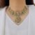 Embrace royal elegance with this exquisitely crafted choker set. Featuring mint-green emerald stones encased in intricate gold-toned floral motifs, this piece is a testament to timeless artistry. The centerpiece is a magnificent crescent-shaped (Chandbali) pendant, finished with a delicate fringe of creamy pearls and green seed beads. Accompanied by matching statement earrings, this set is designed for the woman who wants to make an unforgettable entrance at weddings and festive occasions.
