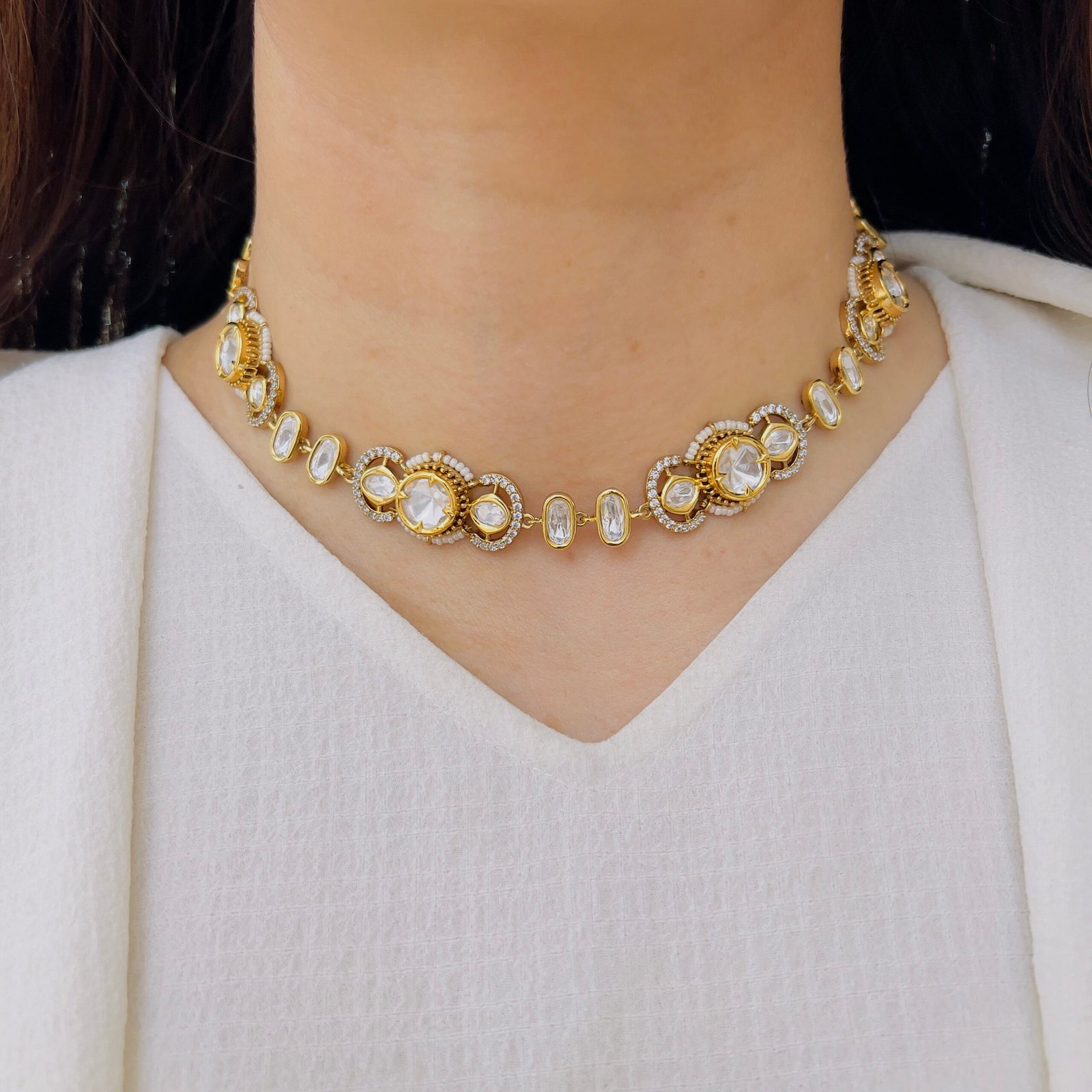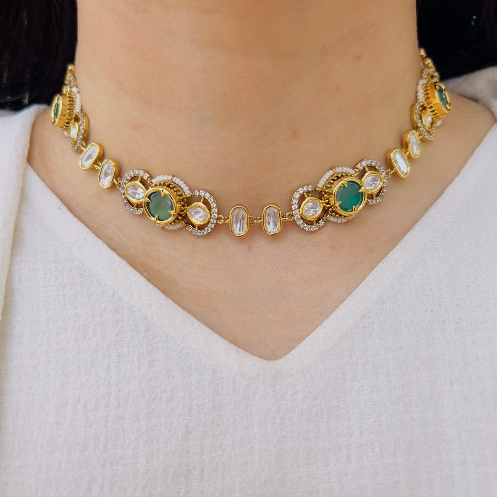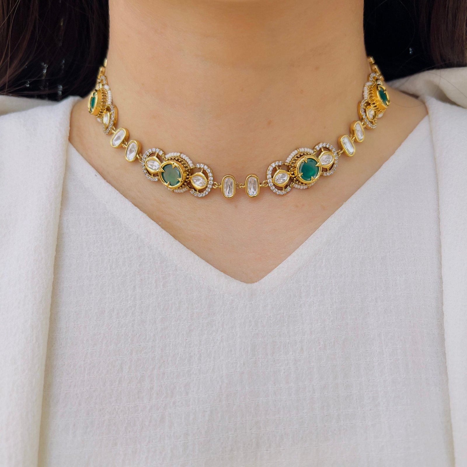 This choker is crafted to stand out with its intricate design and bold presence, Ideal for festive occasions, it enhances your overall look with effortless charm and sophistication.