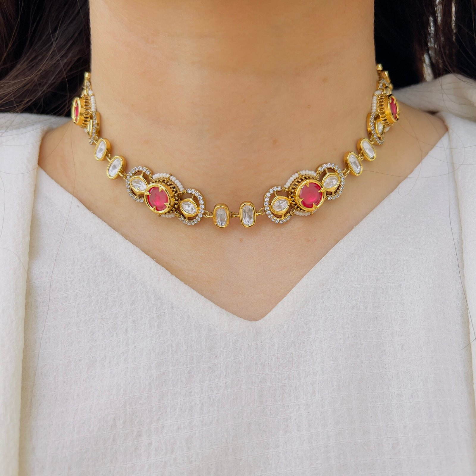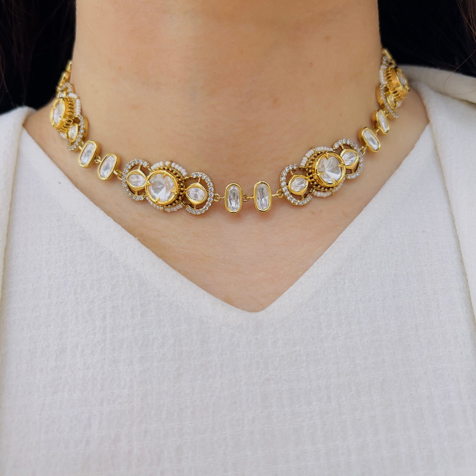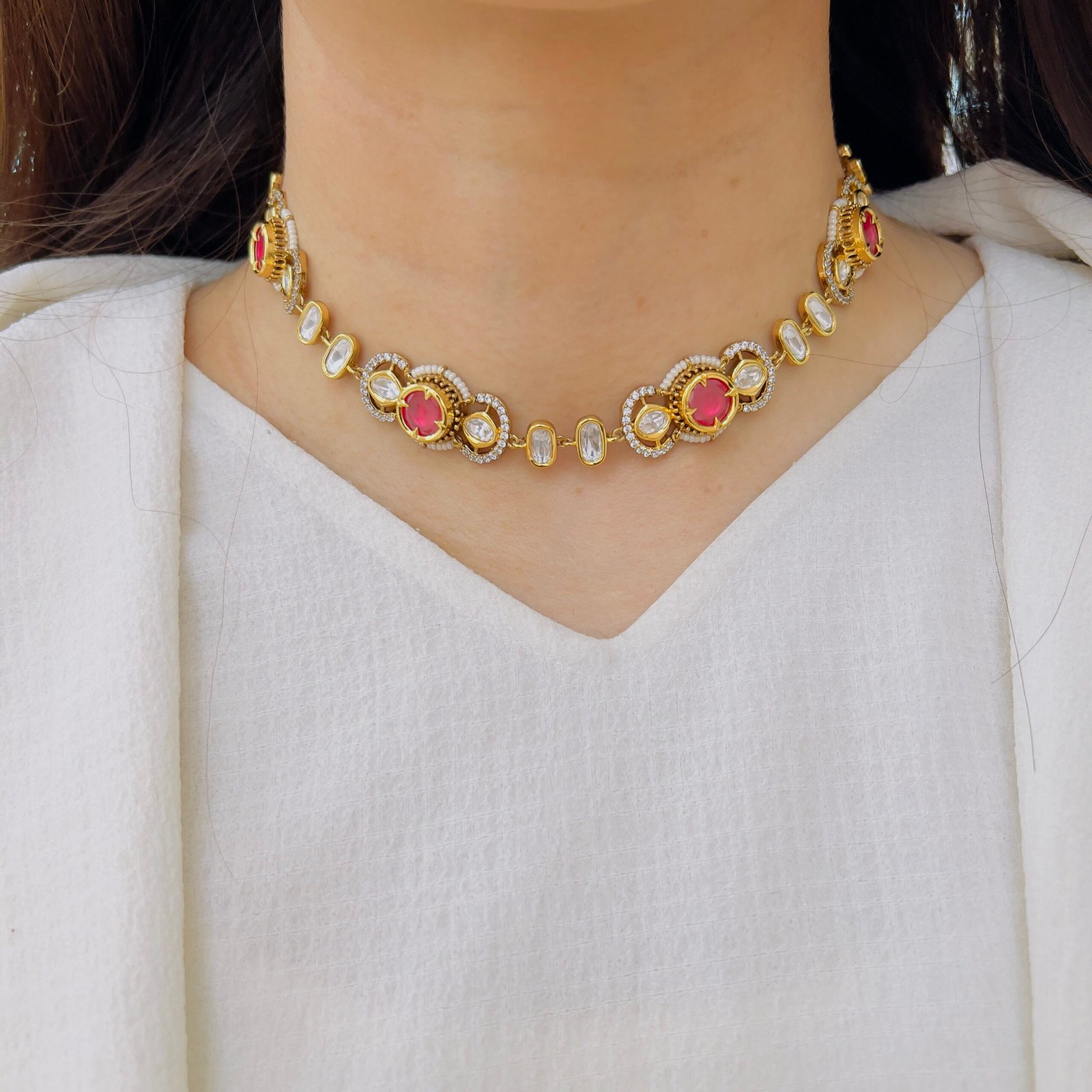 This choker is crafted to stand out with its intricate design and bold presence, Ideal for festive occasions, it enhances your overall look with effortless charm and sophistication.