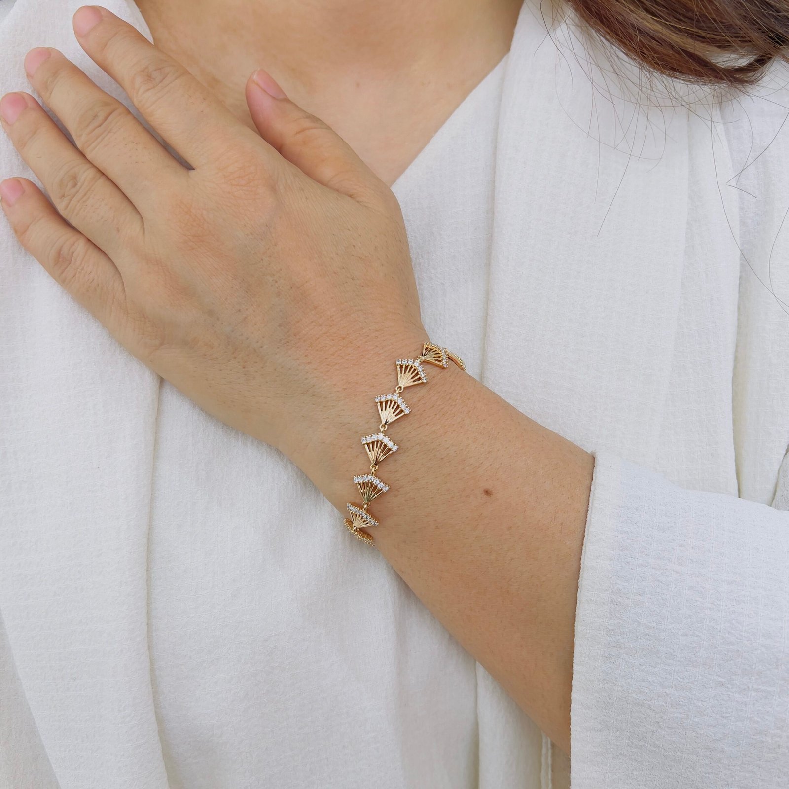 This 18K gold plated bracelet adds a refined sparkle to your everyday and work outfits, A timeless piece that complements every look with ease.