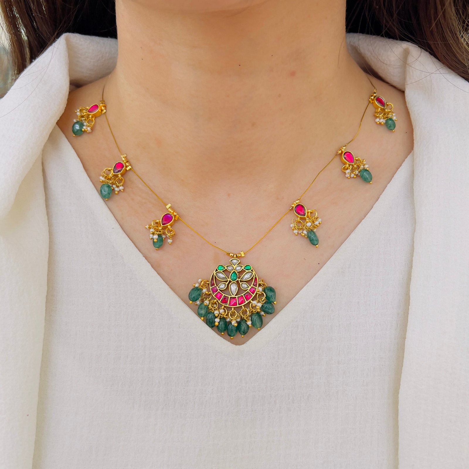 Designed with a nearly invisible chain and a richly crafted traditional pendant, this necklace offers lightweight comfort and a refined finish. Ideal for women who love subtle jewelry that still stands out beautifully.