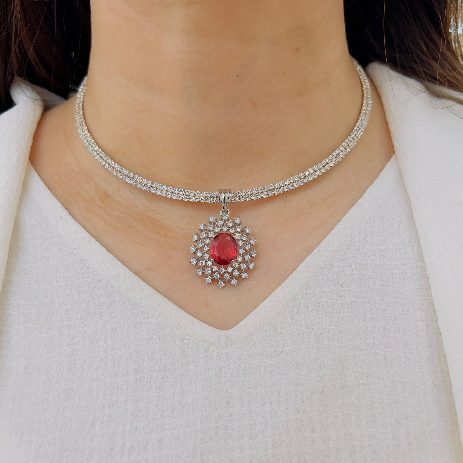 A stylish blend of contemporary design and classic sparkle, This pendant set is perfect for women who love minimal yet statement jewelry.