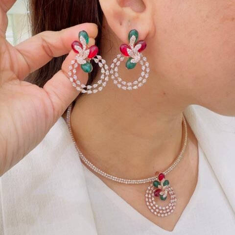 Crafted for elegance lovers, this modern diamond pendant set showcases a chic circular design with a floral accent, The subtle shine and refined finish make it ideal for party wear, festive occasions, and stylish outings.