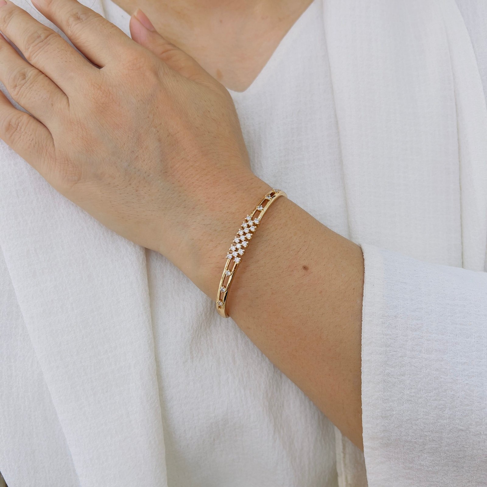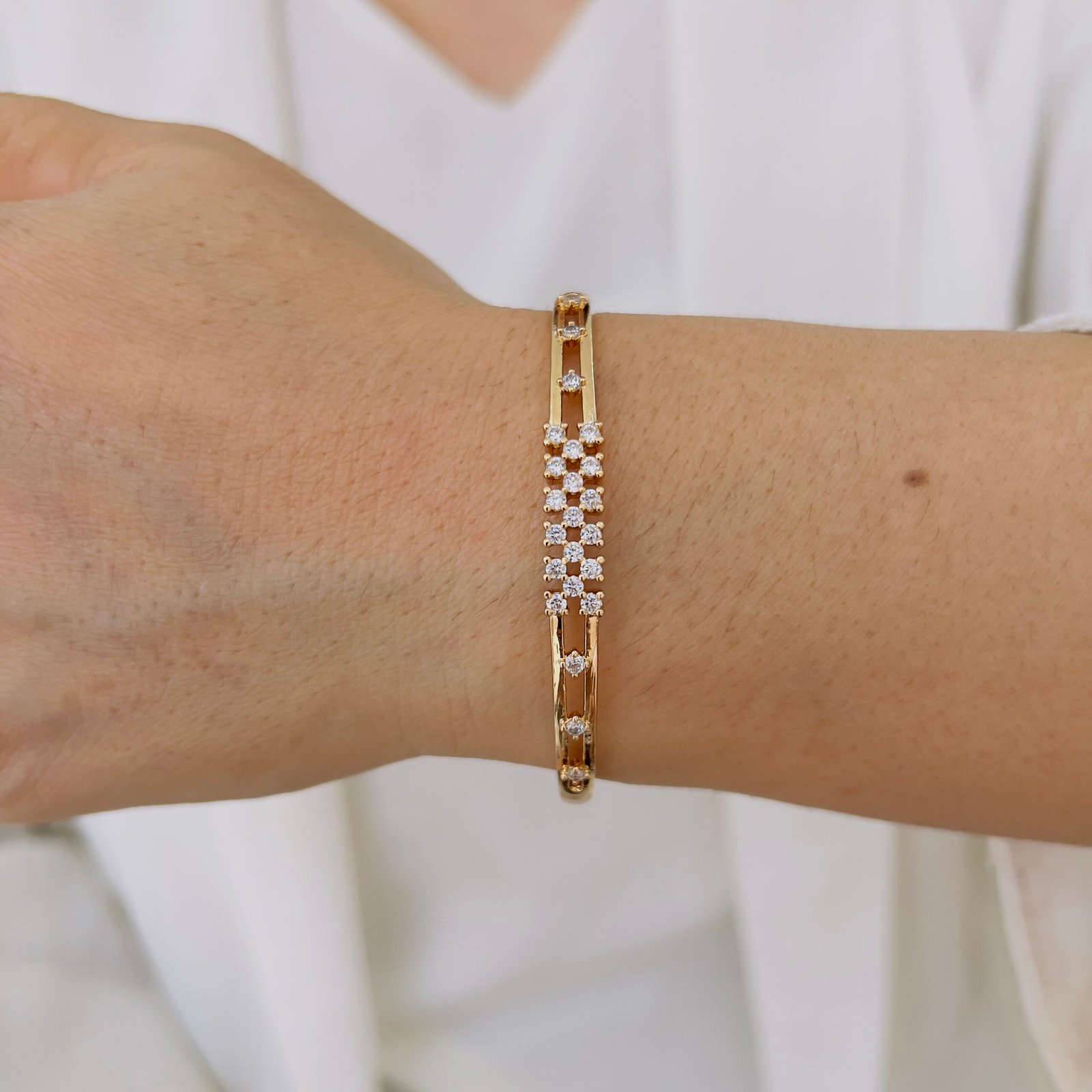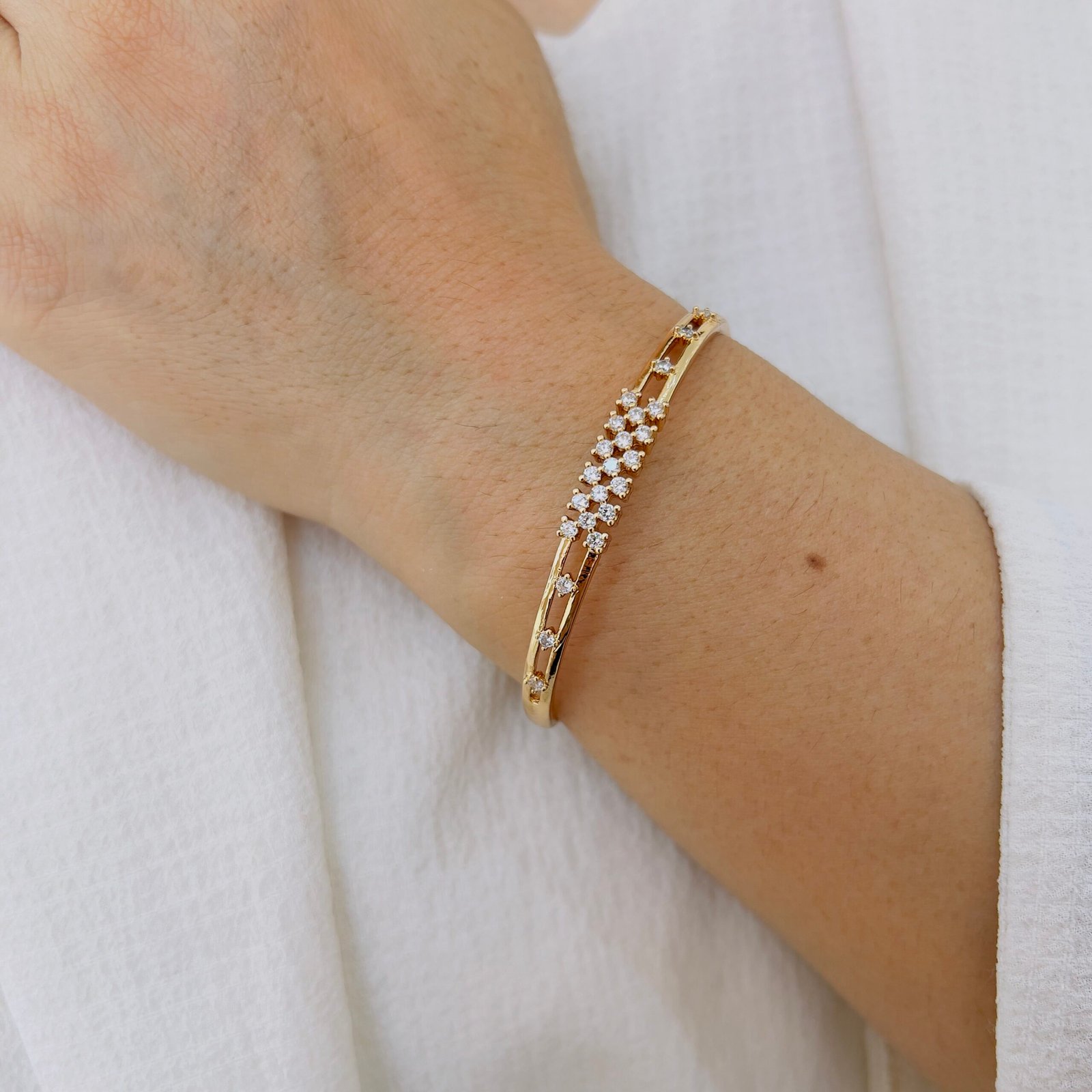 A sleek and modern design made for daily wear, This 18K gold plated bracelet adds just the right touch of sophistication to your office style.