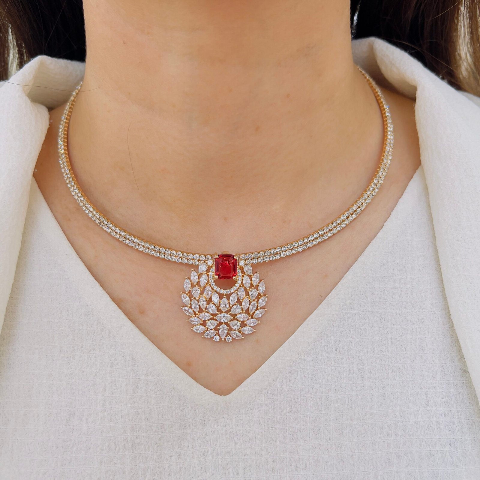 Opulent Bloom Diamond Pendant Set
