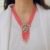 Make a refreshing style statement with this unique multi-strand necklace set. Featuring vibrant watermelon pink beads layered to perfection, the necklace is anchored by a contemporary geometric pendant with a mint-green center stone and Polki accents. Finished with delicate pearl drops, this set blends traditional craftsmanship with a modern pastel palette. It’s the perfect accessory for a daytime wedding, a mehendi ceremony, or a sophisticated garden party.