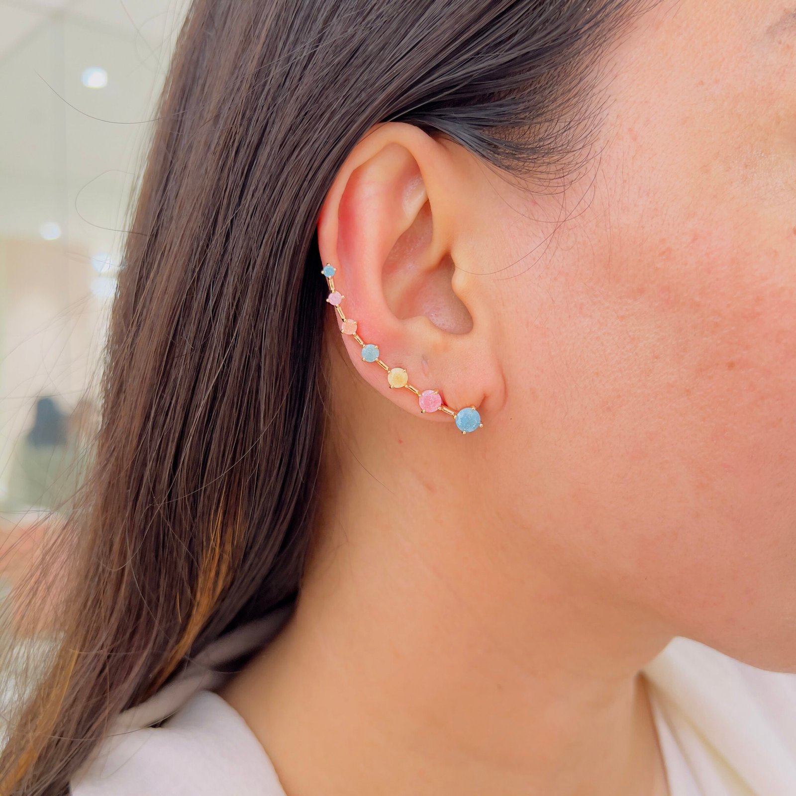 Delicately designed with soft pastel stones, this 18K gold plated ear cuff adds a modern yet elegant charm, Lightweight and stylish, it’s perfect for elevating everyday looks or special outfits effortlessly.