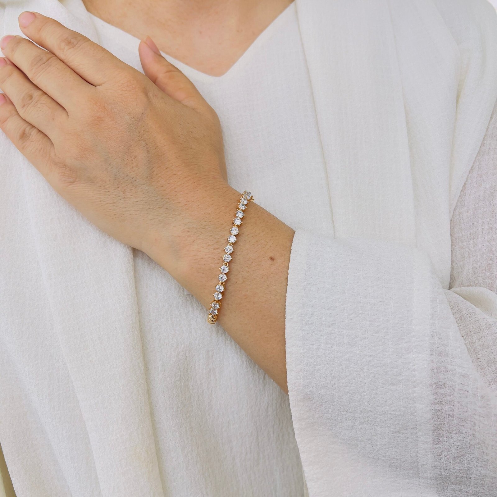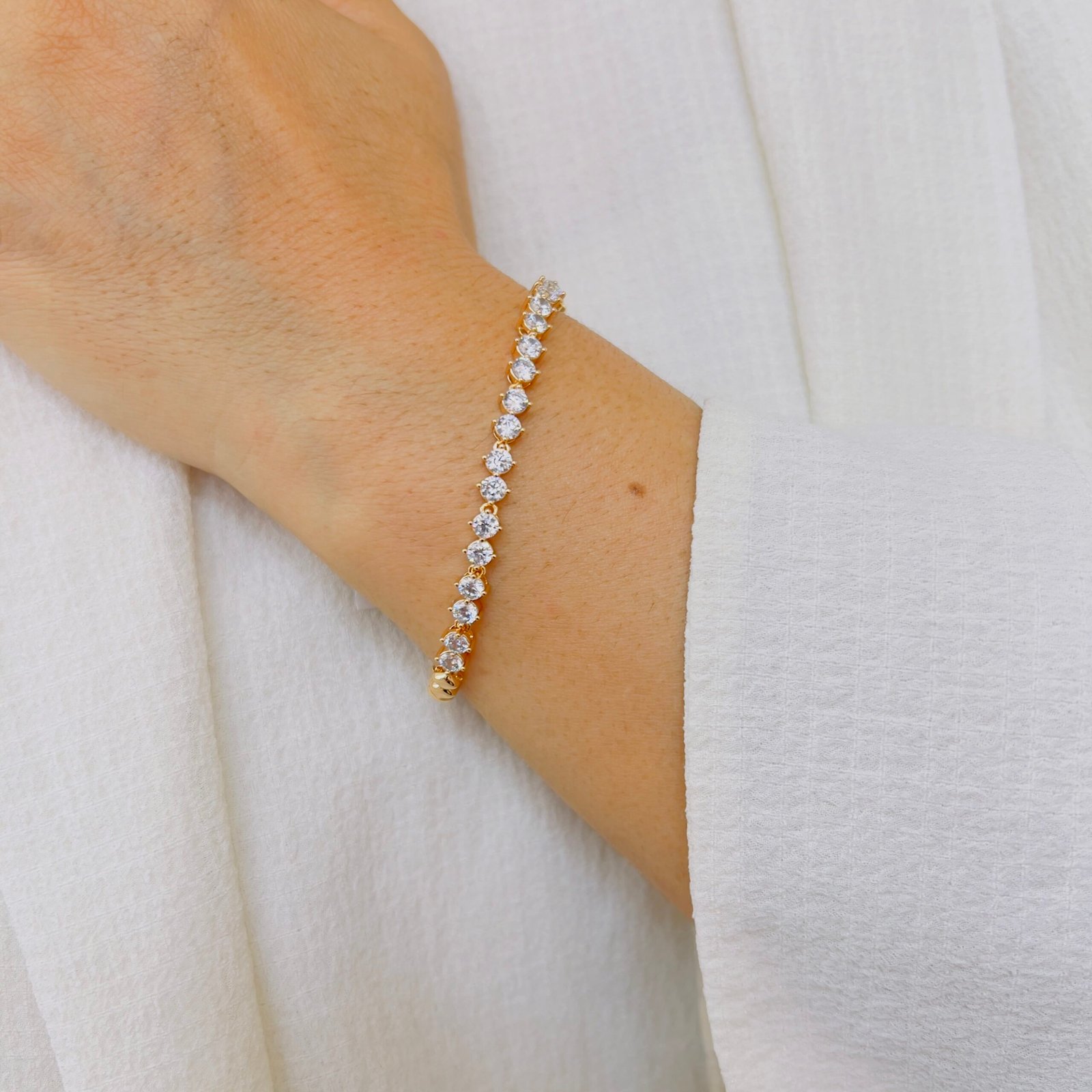 This 18K gold plated bracelet features shiny stones with an anti-tarnish finish. Made for daily and office wear, it is strong enough for rough use while delivering a smooth, long-lasting shine.