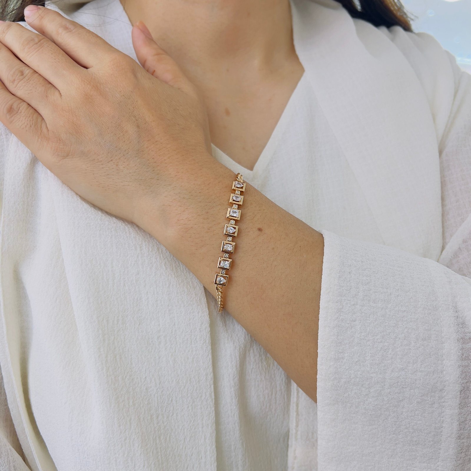 Made for daily comfort, this 18K gold plated bracelet stays shiny with its powerful anti-tarnish coating, Ideal for rough use, it combines durability with a sleek design, making it the perfect everyday accessory.