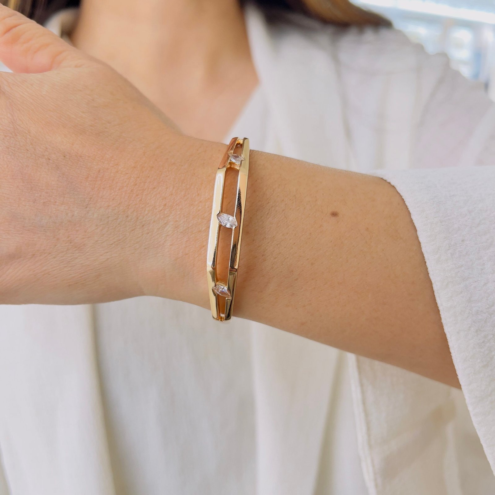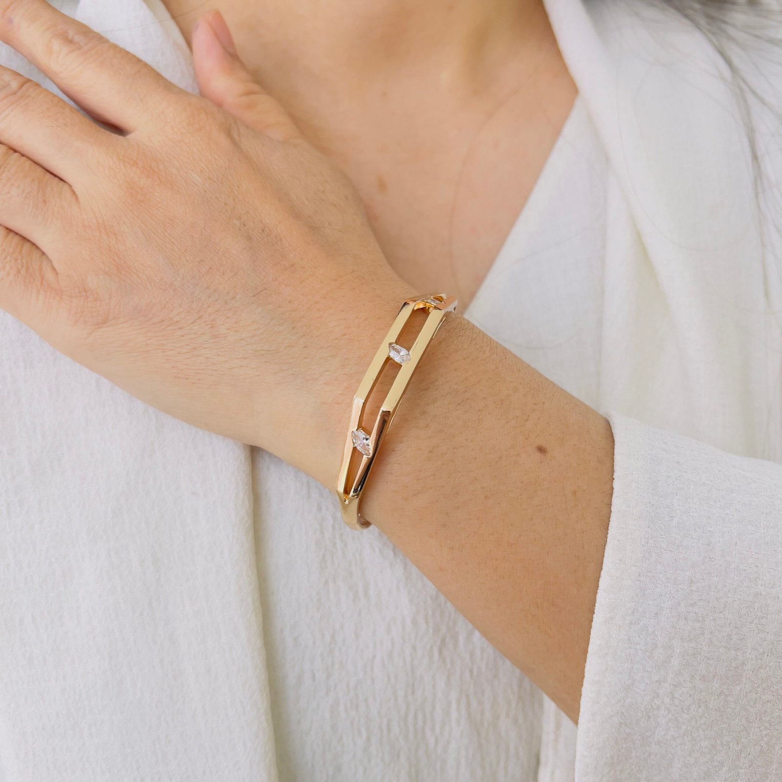 A durable kada bracelet designed for everyday wear, featuring 18K gold plating and anti-tarnish protection, Ideal for rough daily usage while offering lasting shine and comfort.