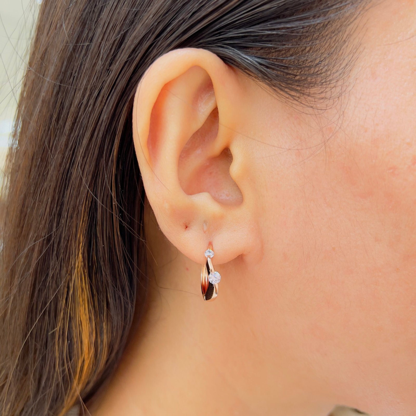 Elevate your everyday look with these 18k Gold-Plated Earrings. Anti-Tarnish, suitable for rough use, and detailed with shiny stones for perfect daily wear.