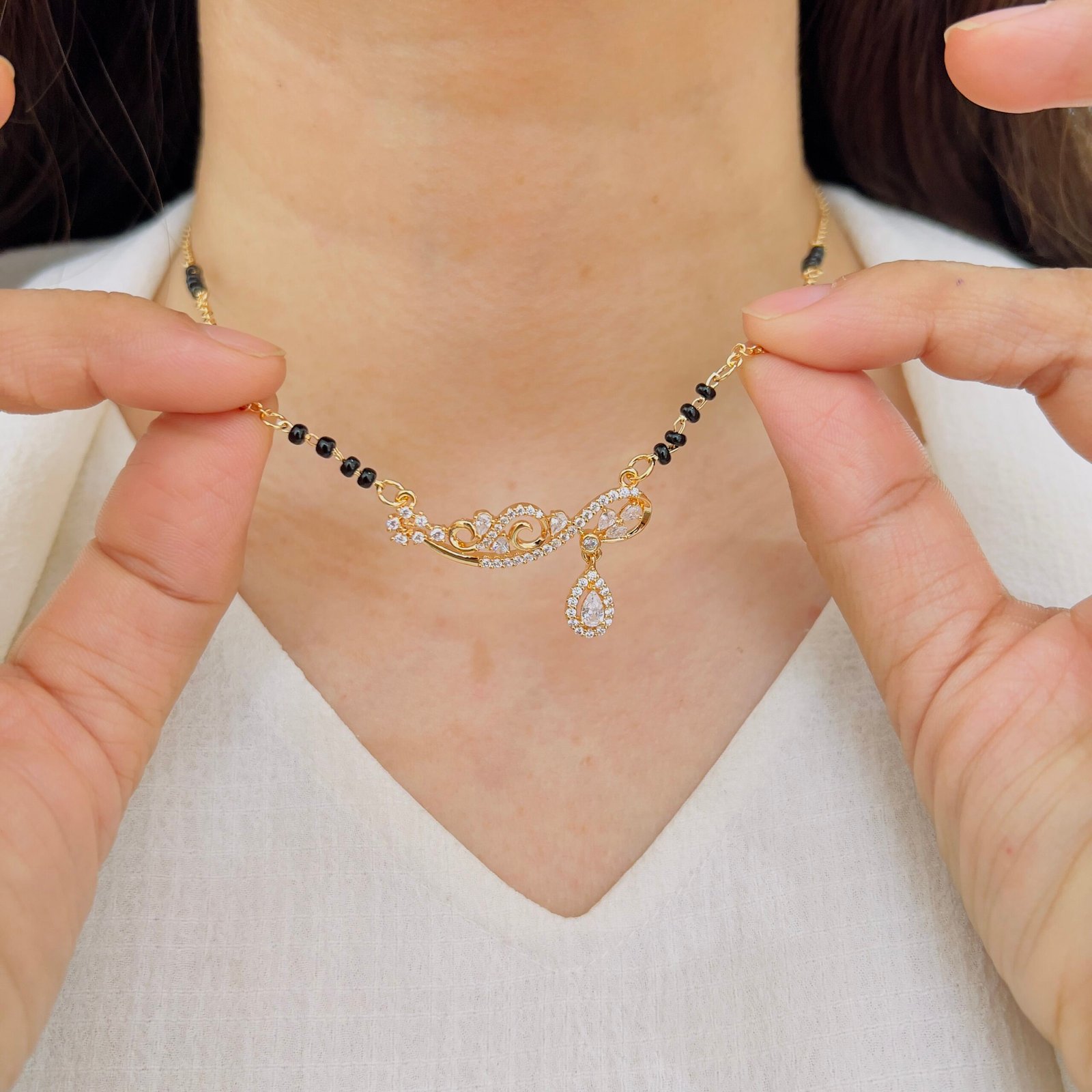A refined black beads mangalsutra crafted with attention to detail and timeless appeal, Its elegant design enhances daily looks while celebrating tradition with a modern, graceful finish.