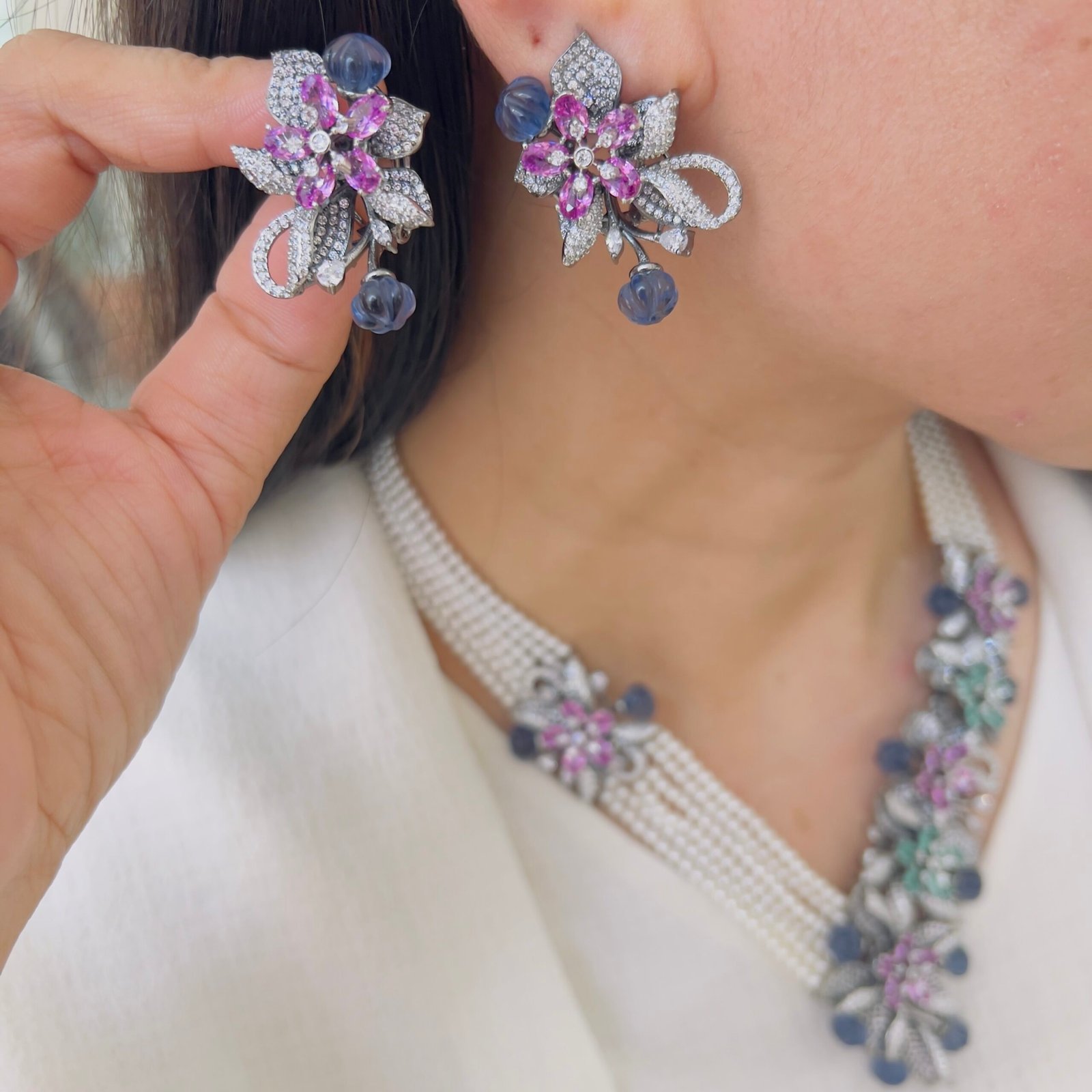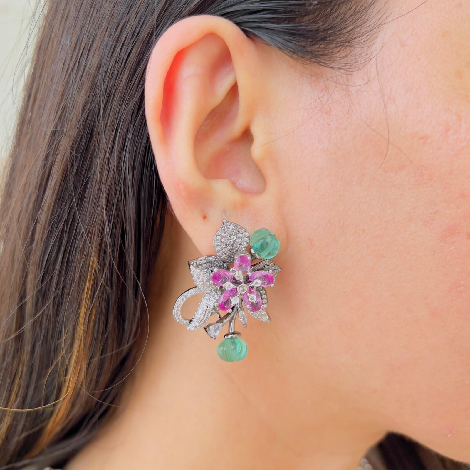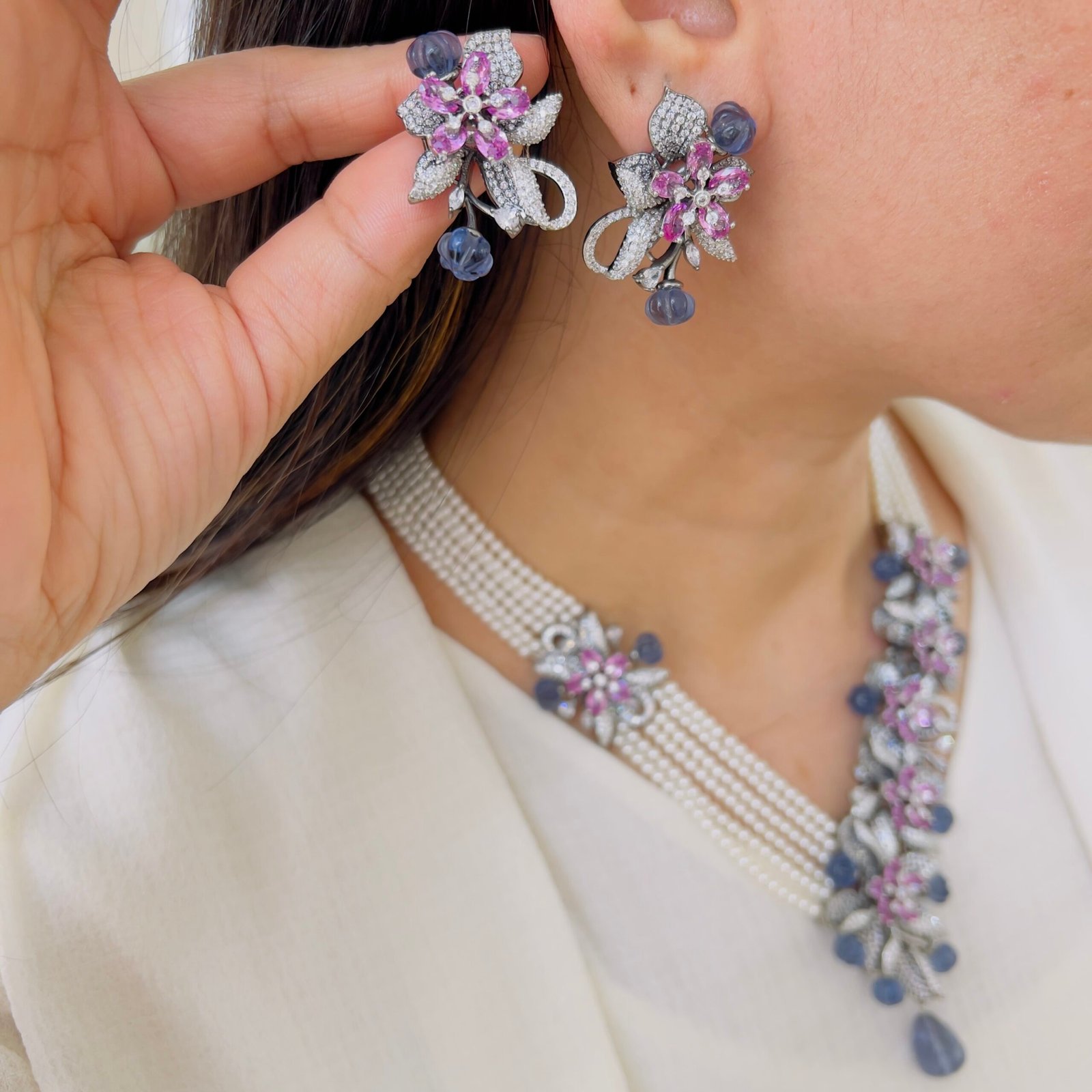 Featuring exquisite stone-studded flowers and smooth beaded strands, this necklace brings together artistry and sophistication, A perfect accessory to elevate ethnic and Indo-western ensembles, ideal for customers who appreciate high-quality statement jewellery.