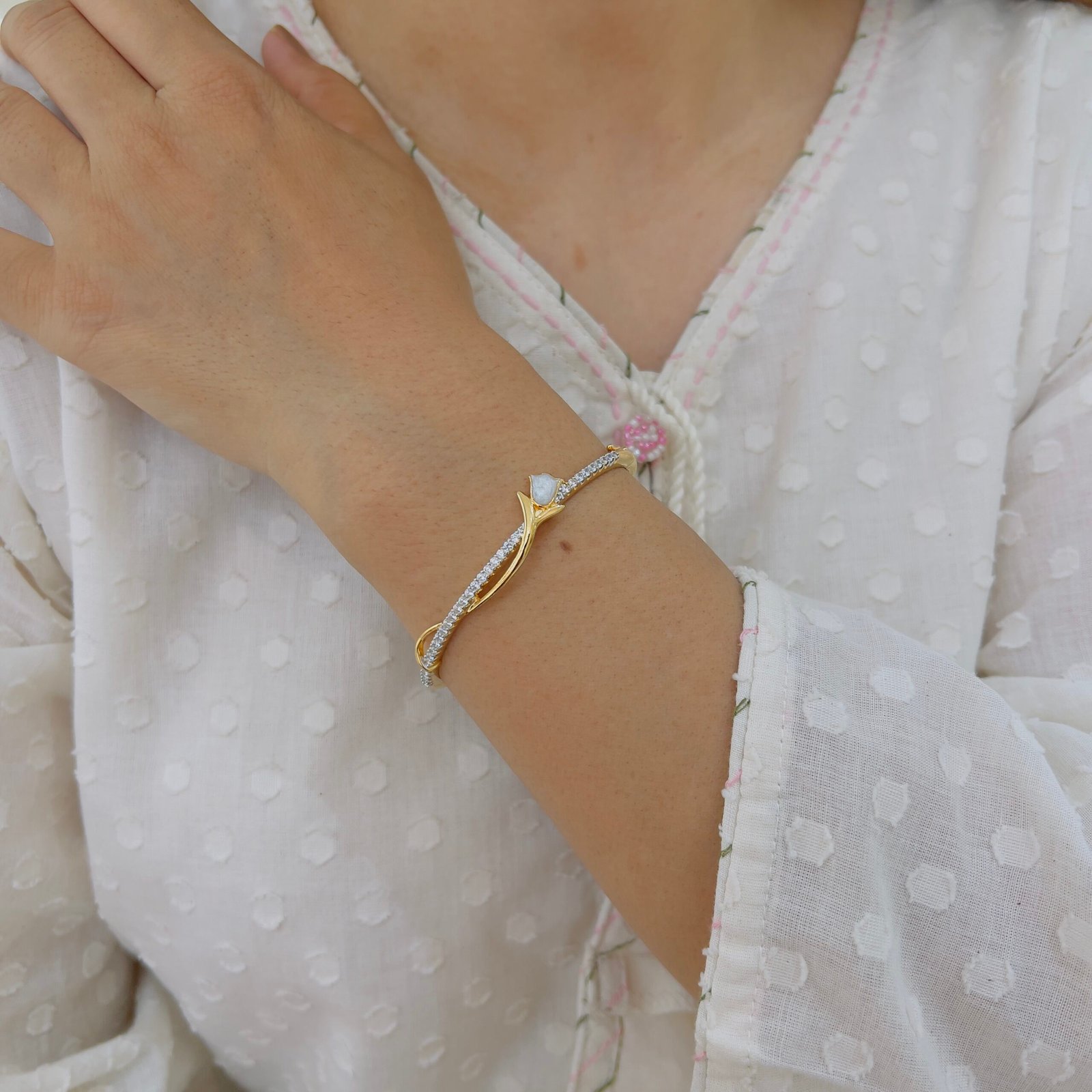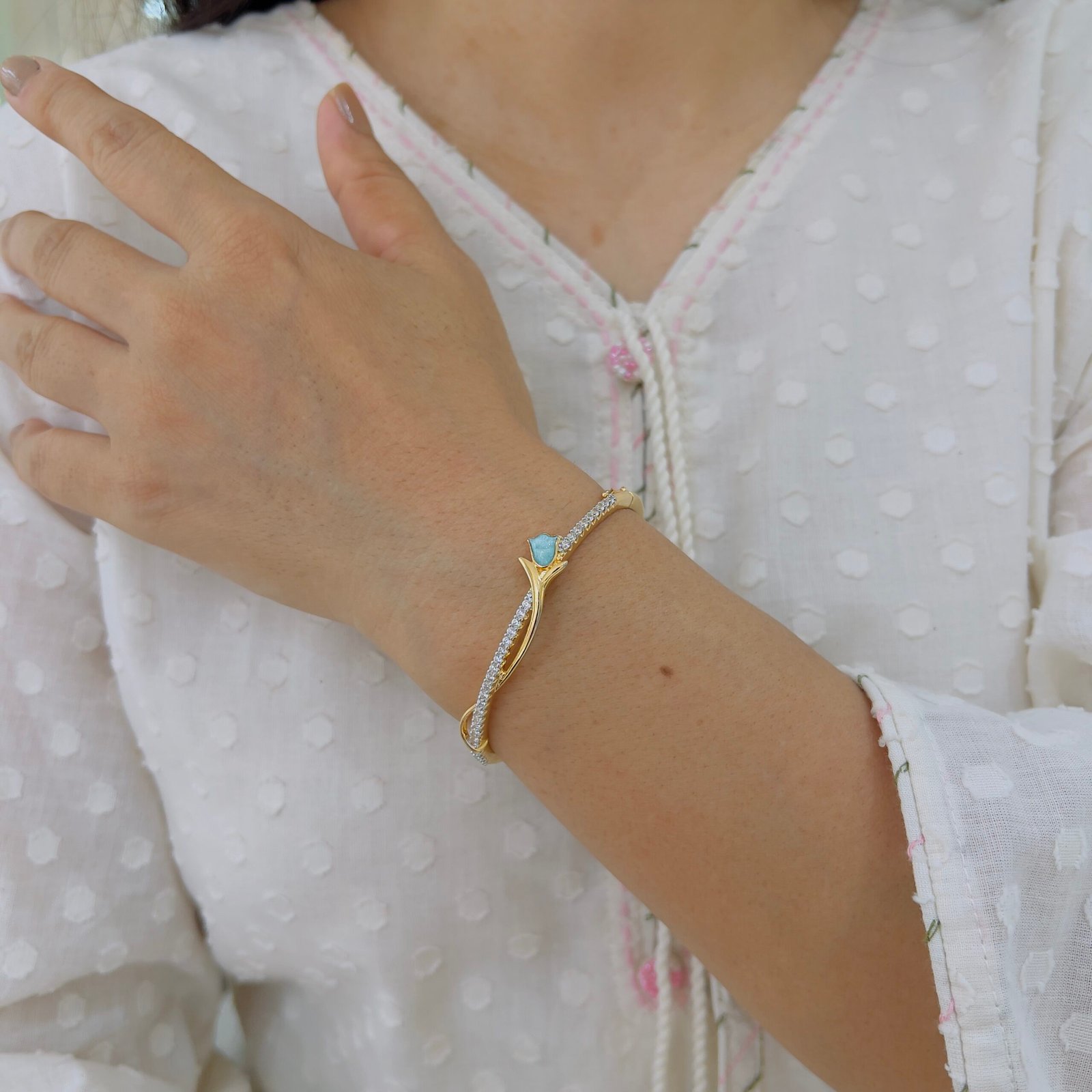 Crafted for elegance and strength, this 18k Gold-Plated kada bracelet with Anti-Tarnish protection and Water Resistance is designed for daily sophistication and office-ready polished charm.