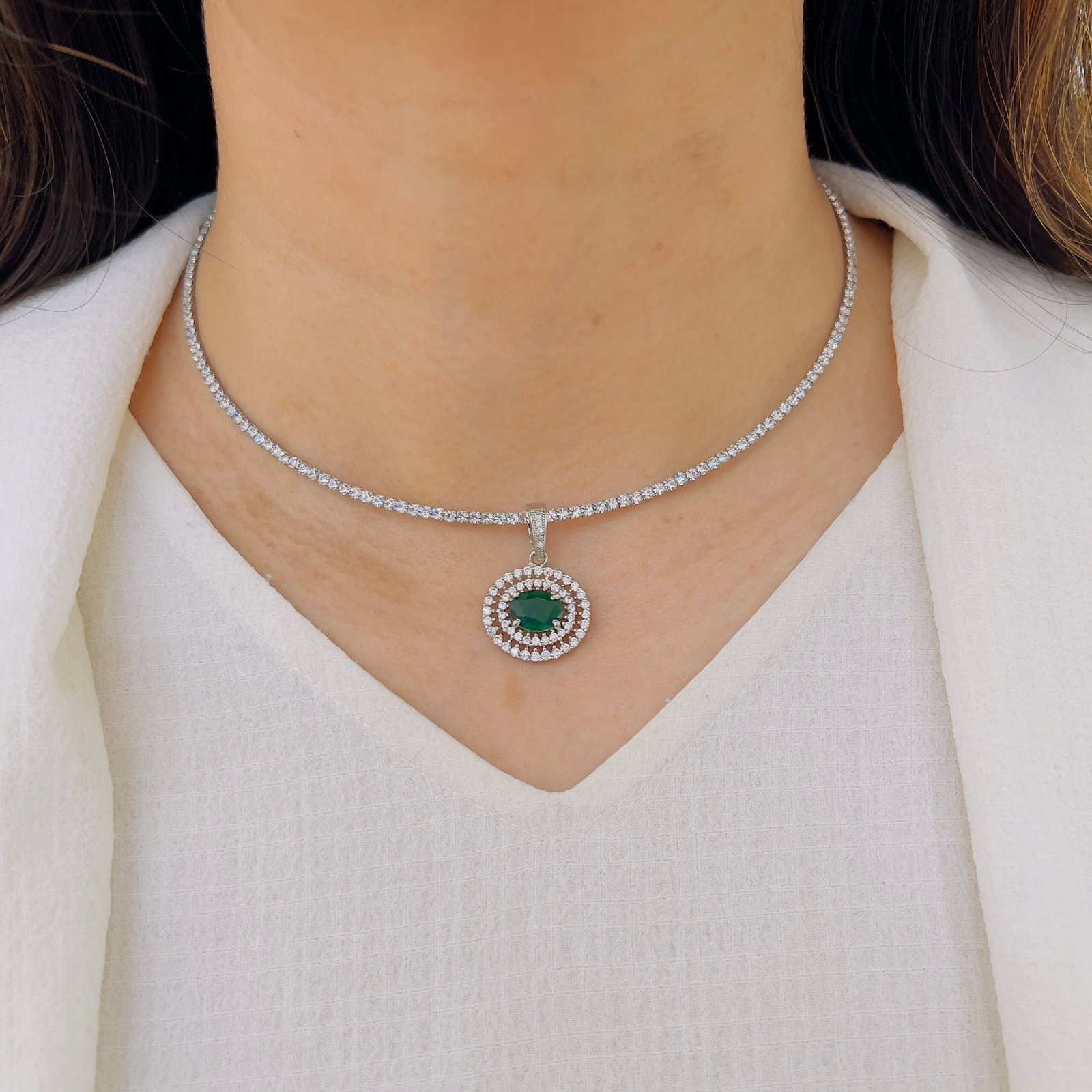 Designed with a graceful floral arrangement and refined craftsmanship, this diamond pendant set offers luminous elegance and timeless appeal, creating a sophisticated statement for festive occasions and elevated everyday styling.