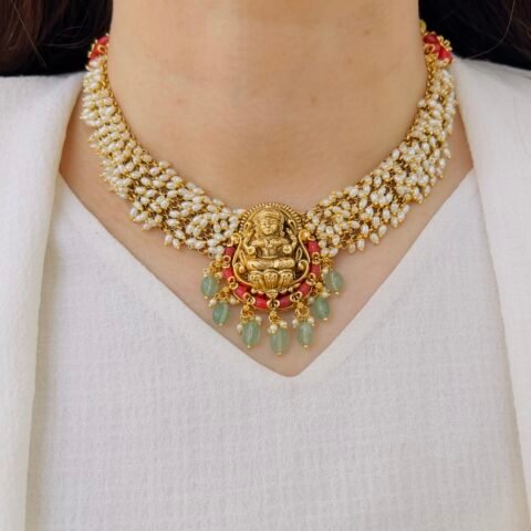 Designed with intricate floral motifs, multicolored stones, and layered drop elements, this Victorian necklace set brings together heritage charm and bold elegance for standout styling.