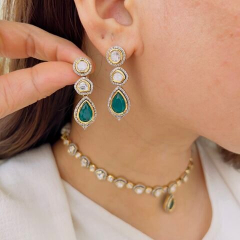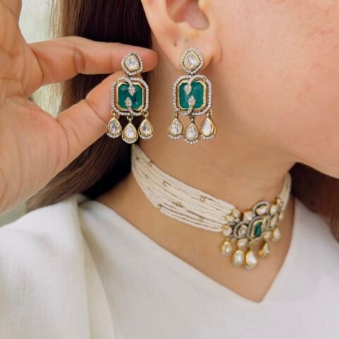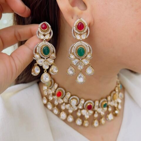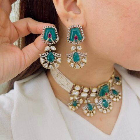 Designed with intricate floral motifs, multicolored stones, and layered drop elements, this Victorian necklace set brings together heritage charm and bold elegance for standout styling.