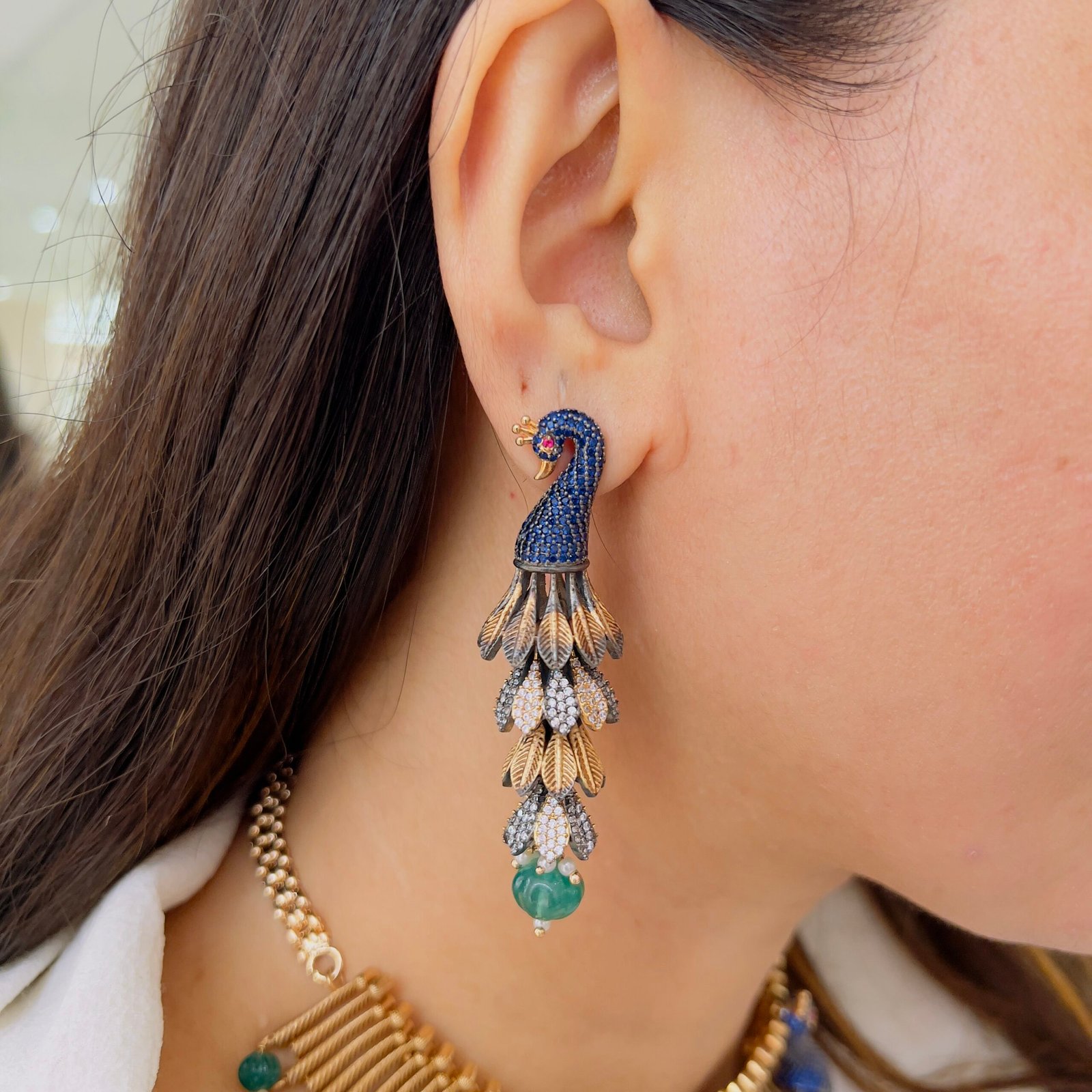 Featuring a richly designed peacock motif and delicate detailing, this necklace set exudes elegance and grandeur, Perfect for weddings, festive gatherings, and traditional occasions, it brings a statement-making charm to every look.