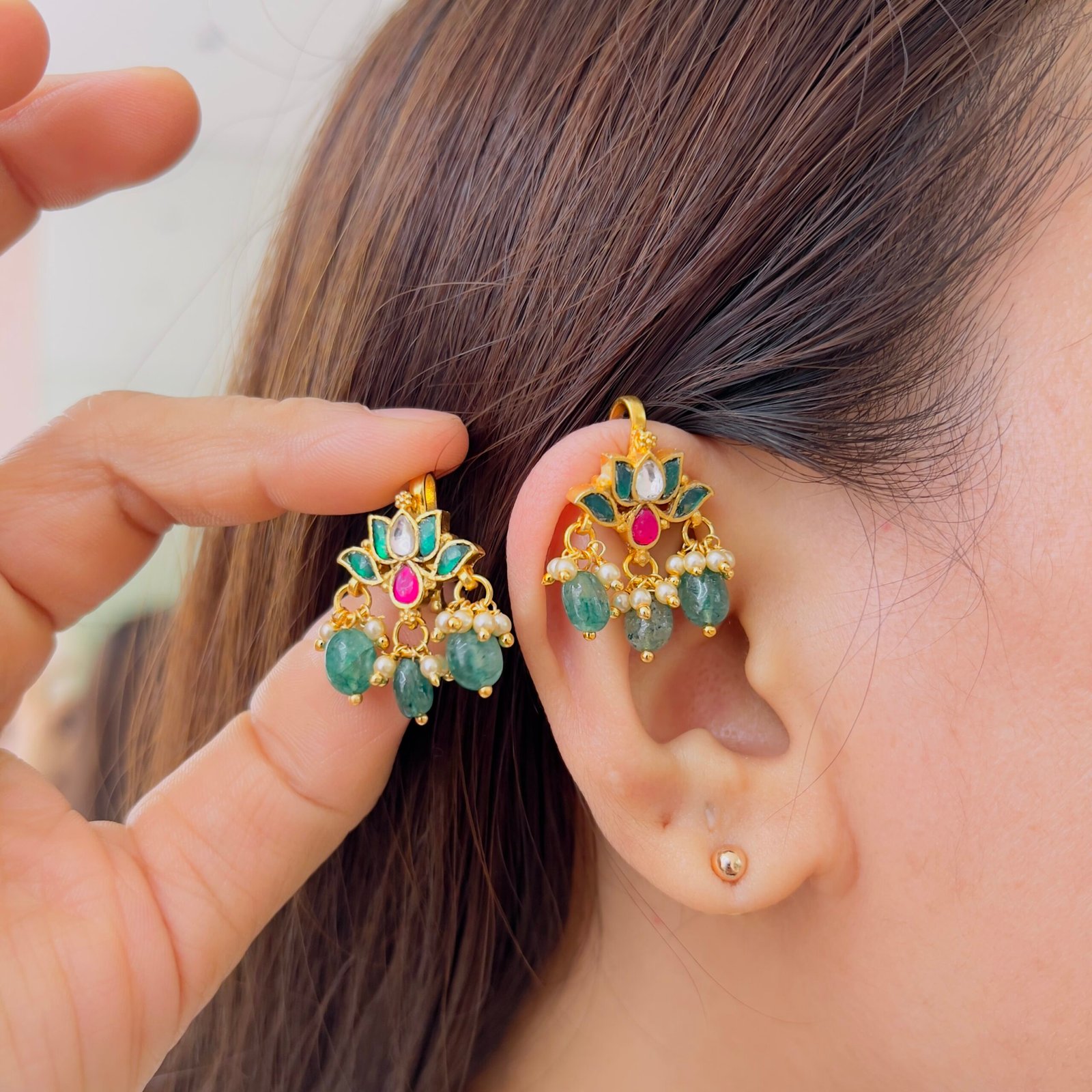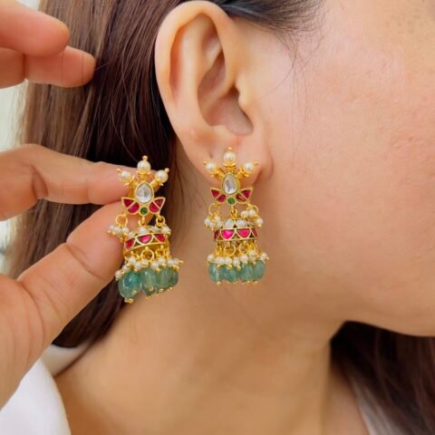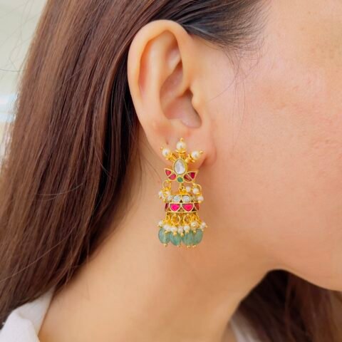 Celebrate tradition with this beautifully crafted Jadau buggadi, inspired by timeless royal jewellery. With intricate stone setting and a rich antique finish, it adds a regal charm to your ethnic look.