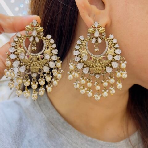 Elevate your look with these statement Victorian earrings, crafted with intricate detailing, sparkling stones, and elegant emerald drops, Designed to capture timeless royalty, this piece adds a luxurious charm to every festive and bridal outfit.