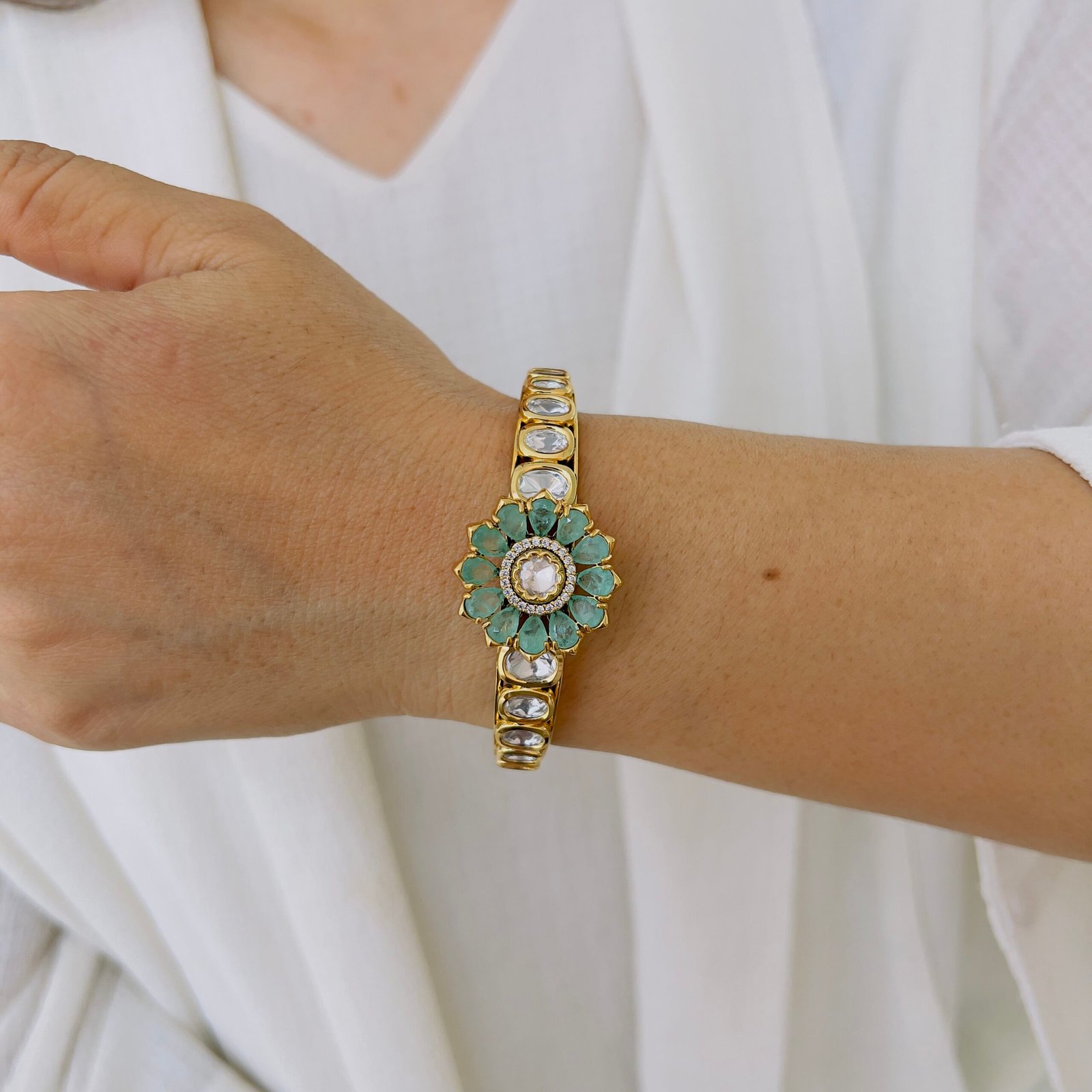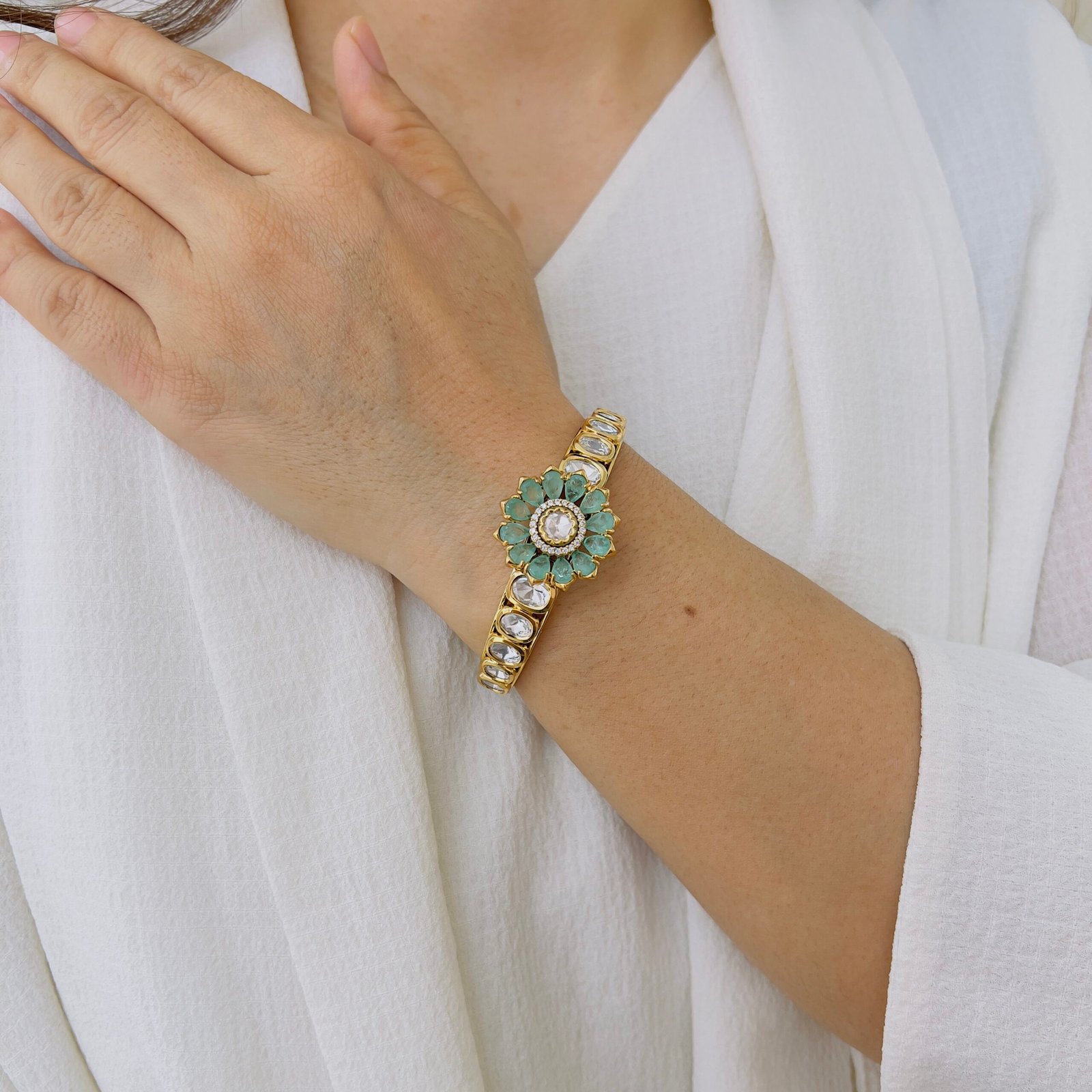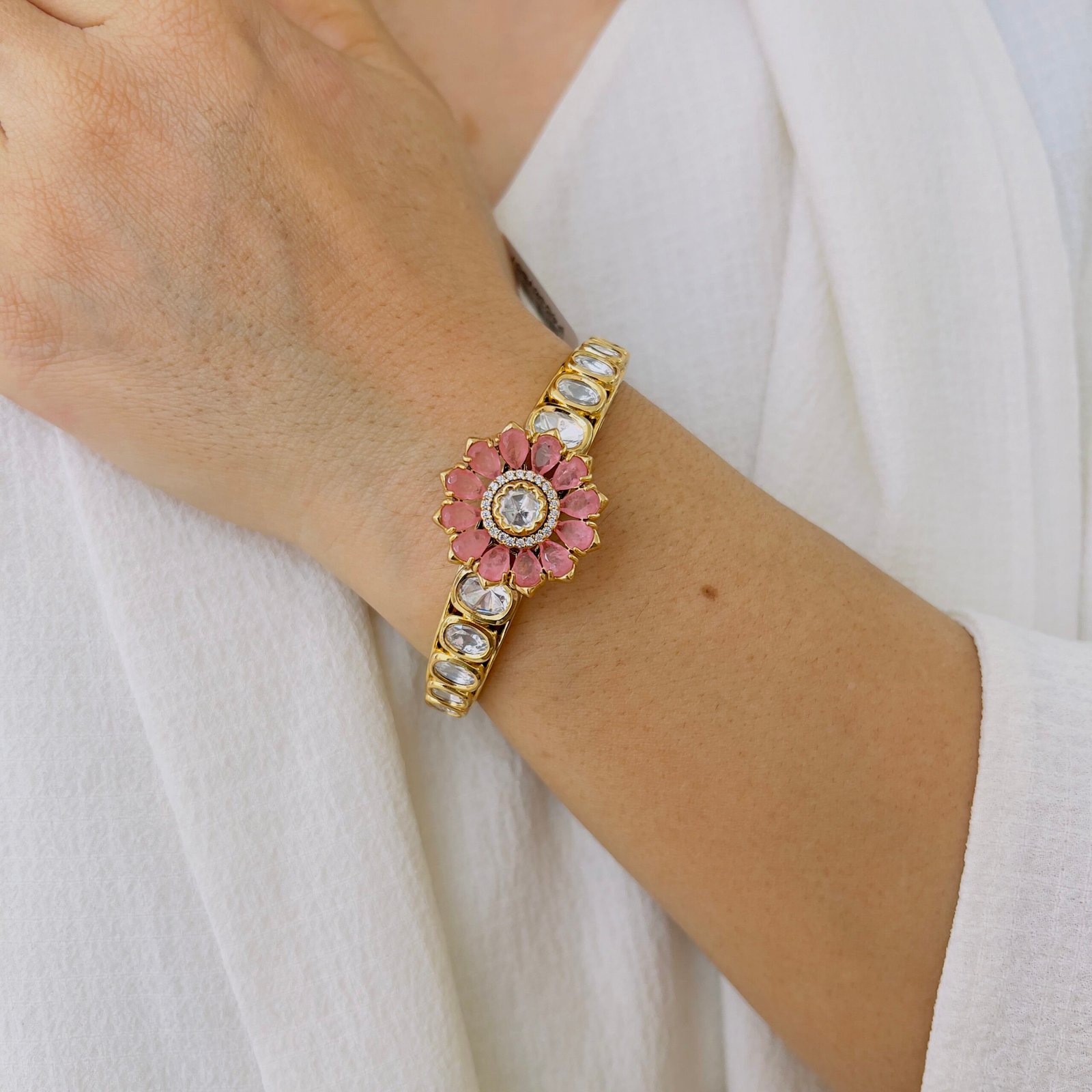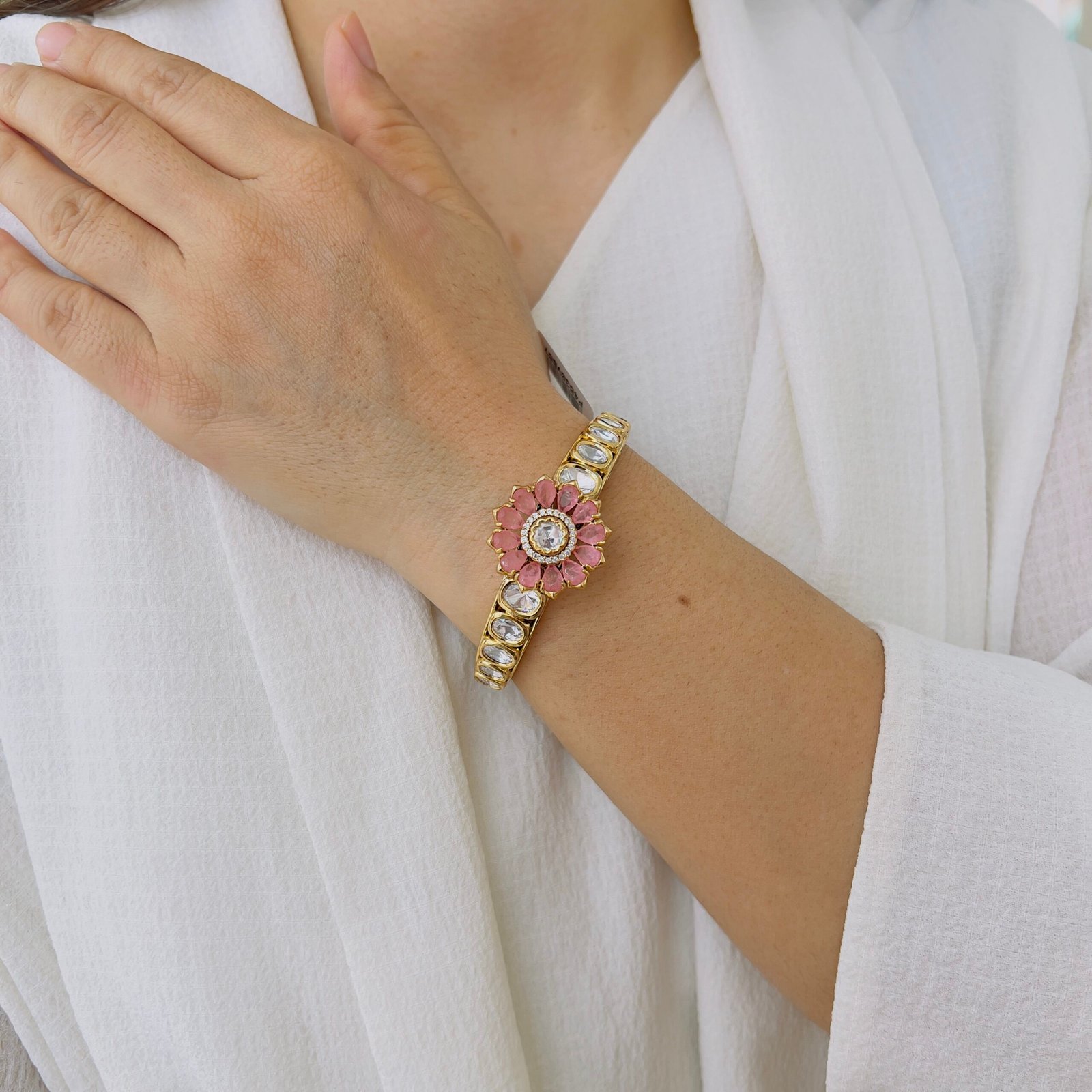 Crafted with a rich Victorian finish and radiant ruby accents, this statement bangle brings heritage charm and refined sparkle to traditional and fusion looks.