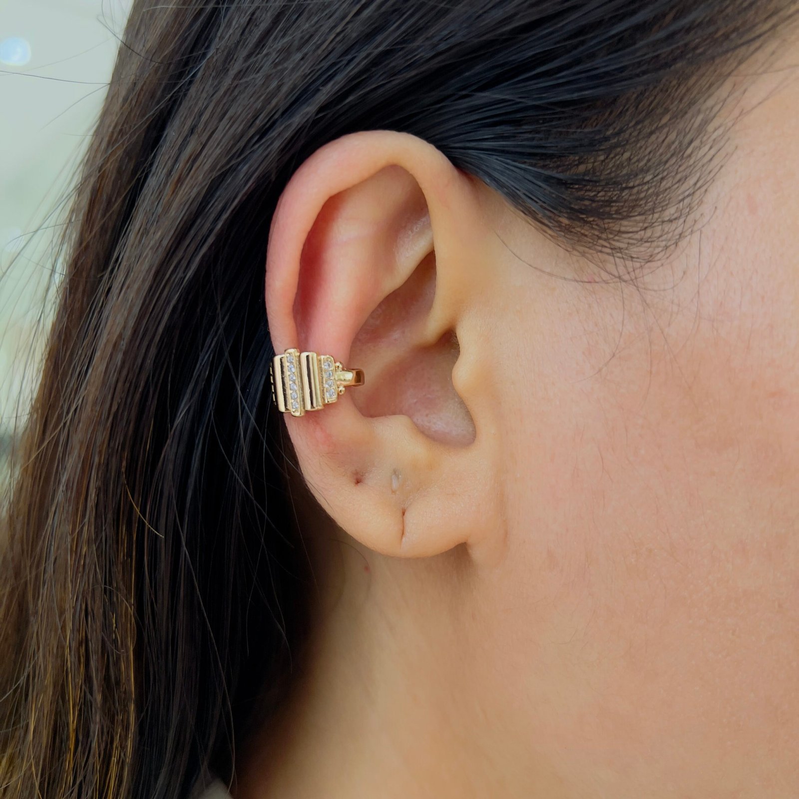Add charm to your everyday look with this 18k gold plated ear cuff. Its anti tarnish finish, shiny stones, and rough use durability make it perfect for office wear or daily elegance.