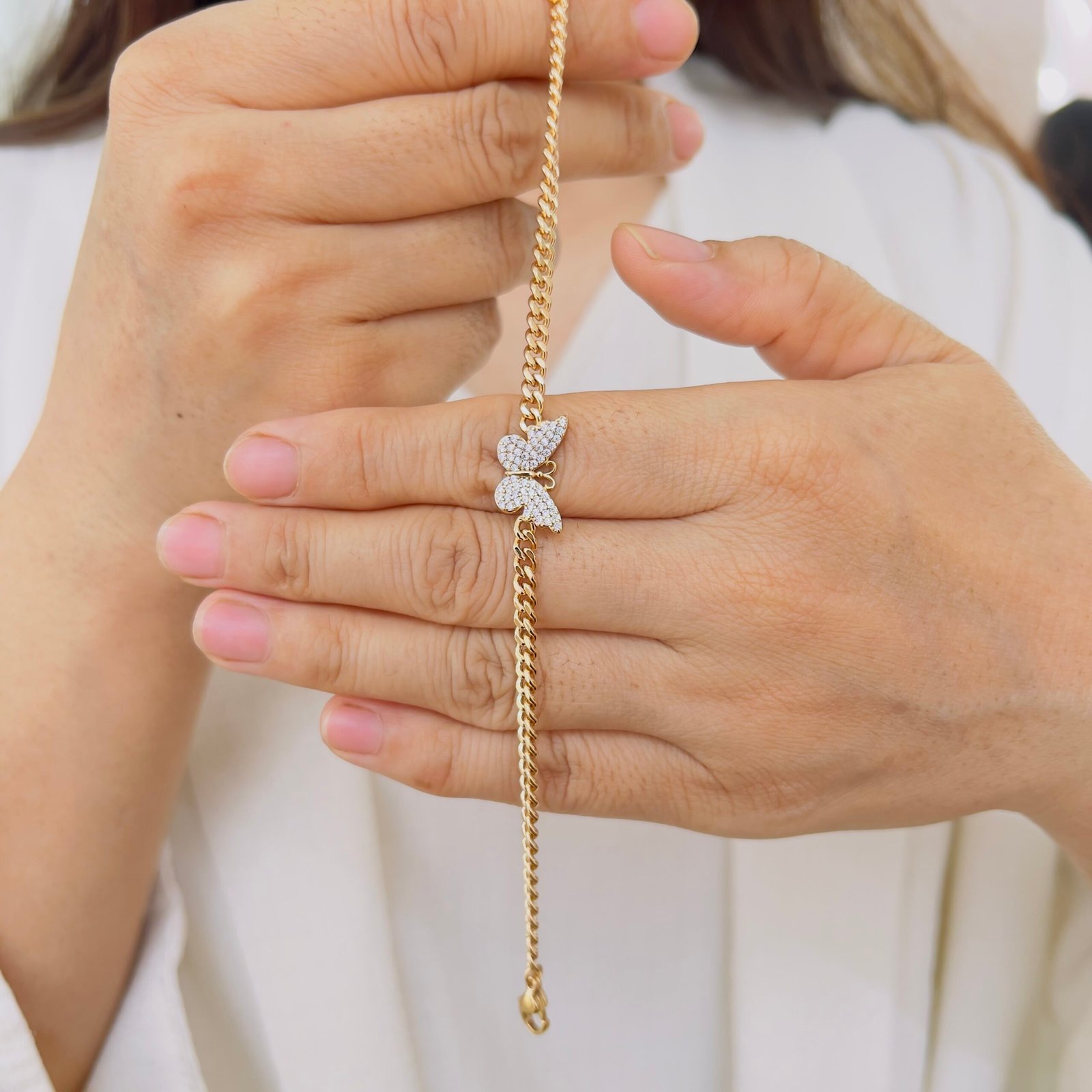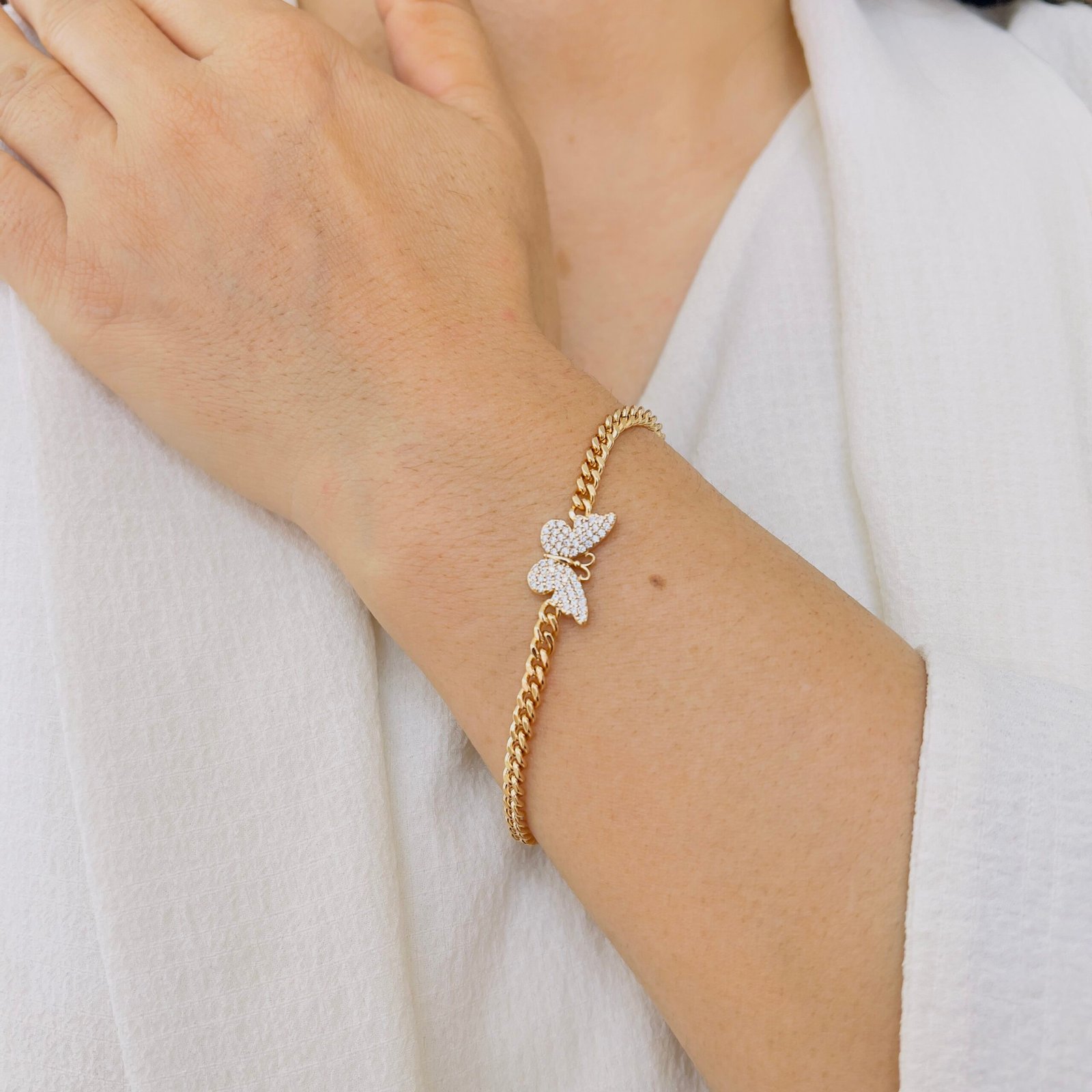 Designed for everyday and office wear, this bracelet features a graceful single butterfly charm, The anti-tarnish finish ensures lasting shine, while its sturdy build comfortably supports rough, regular usage.
