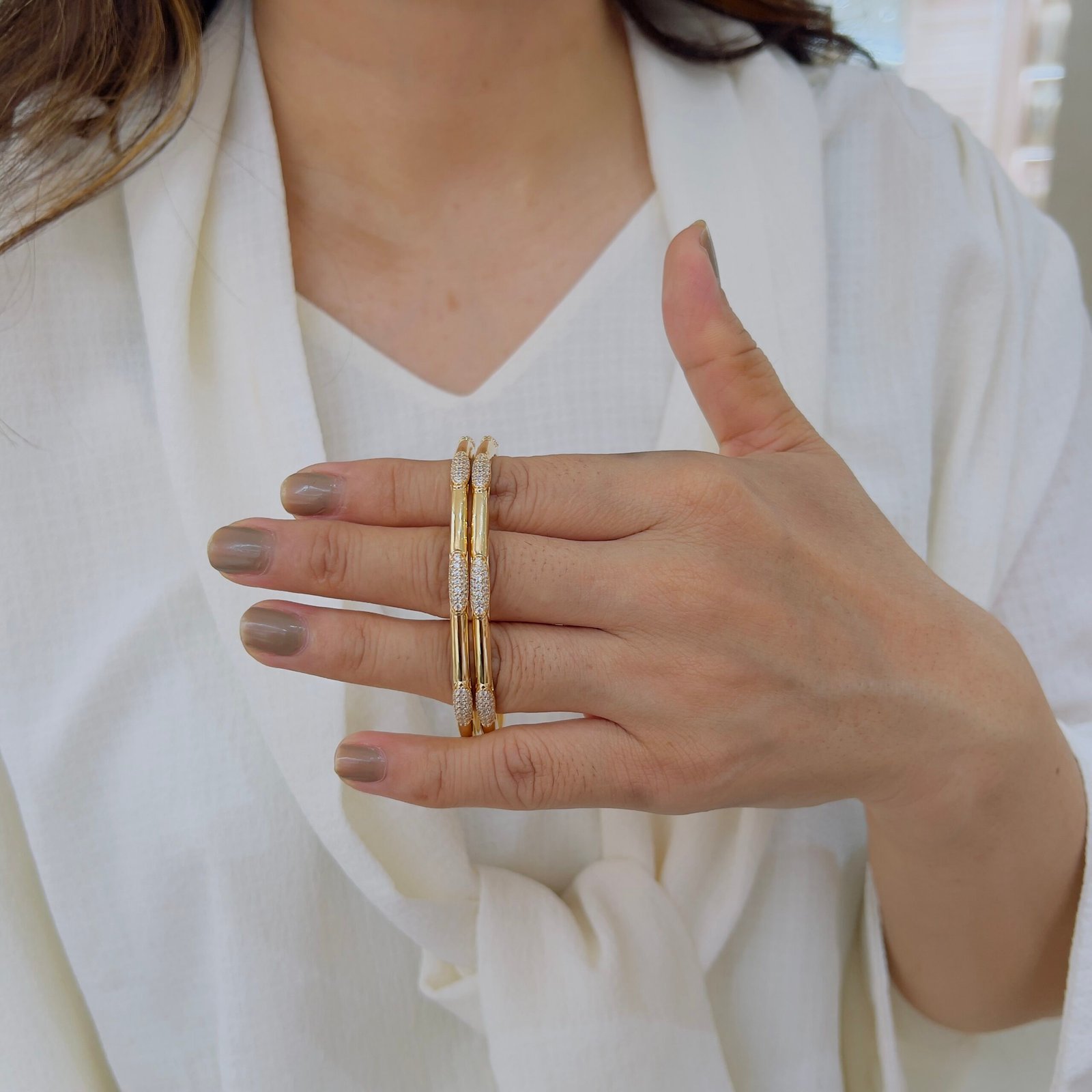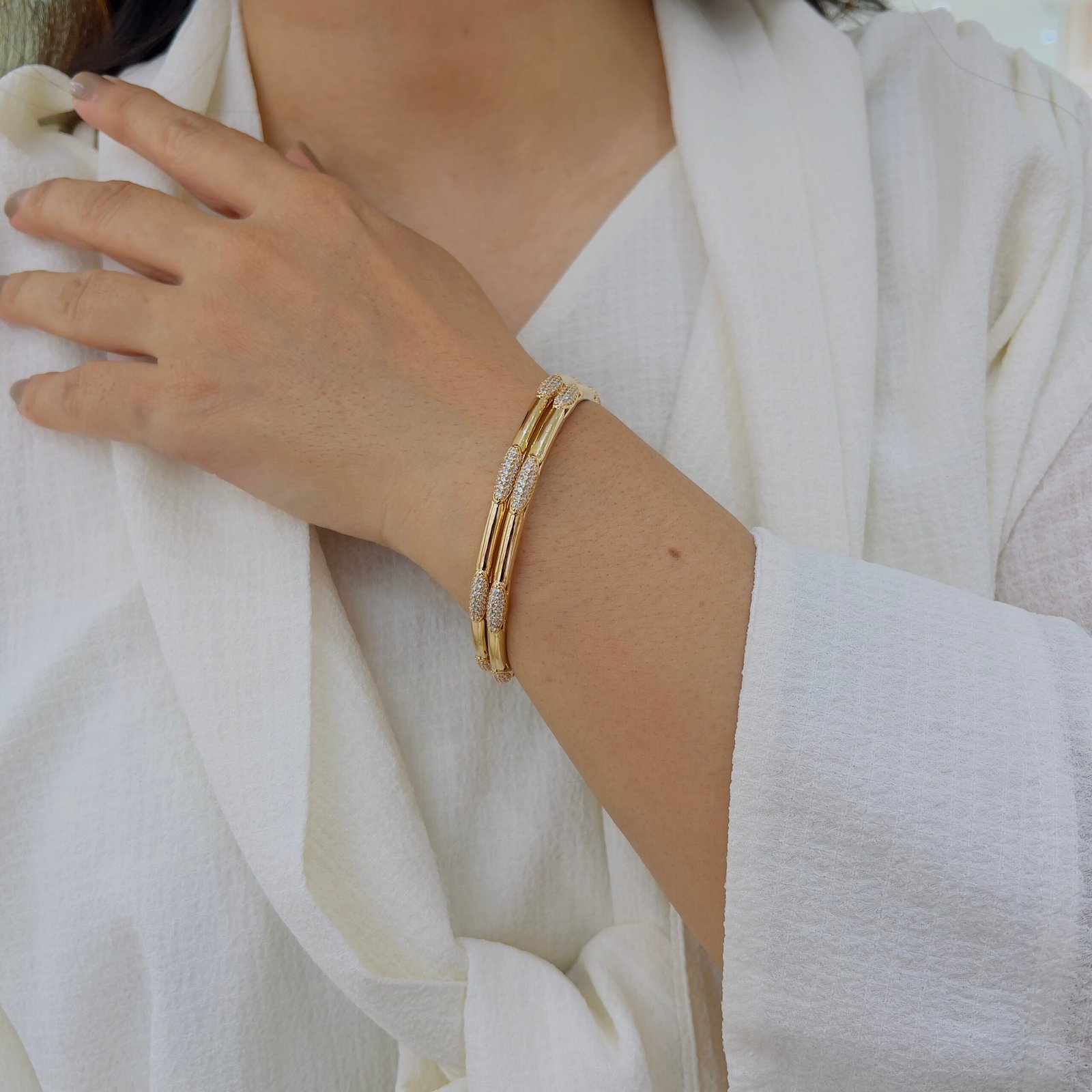 Add radiant beauty to your wrist with 18k Gold-Plated, Anti-Tarnish Diamond Bangles, Made for roughly wear, they are perfect for office and daily elegance.