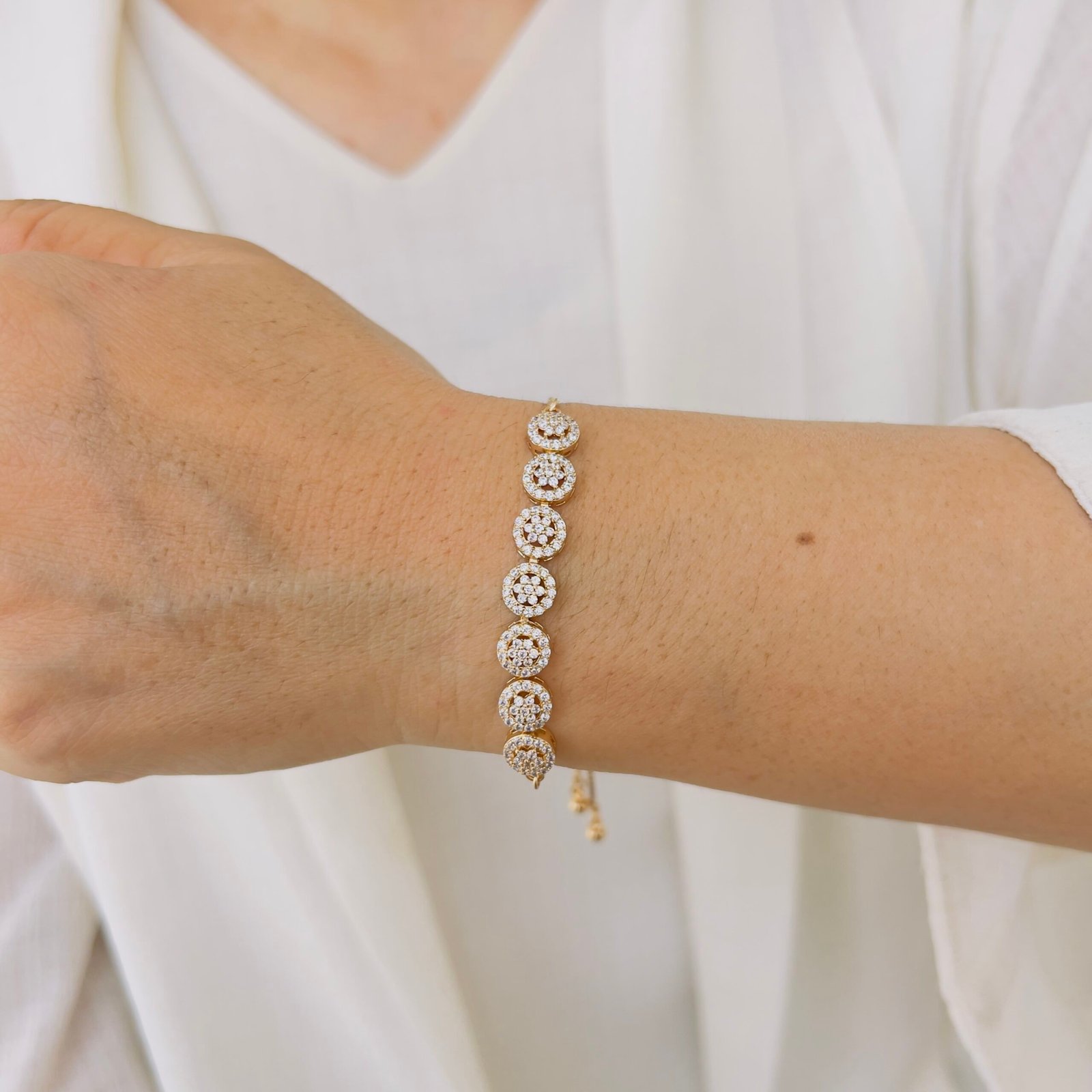 Featuring a sleek design, this bracelet is 18K gold plated and adorned with shiny stones, Anti-tarnish and durable, it’s made for daily wear, office use, and consistent rough handling.