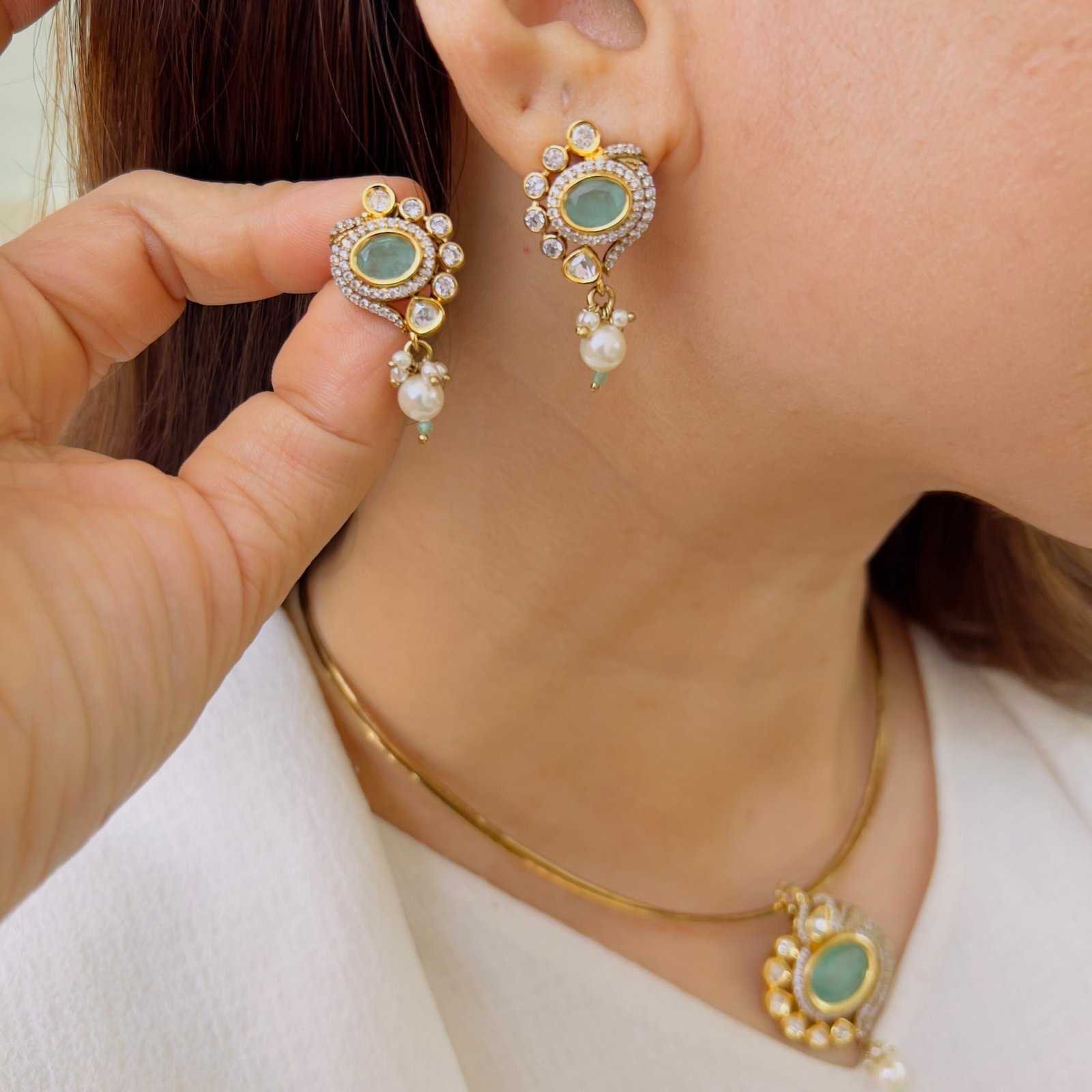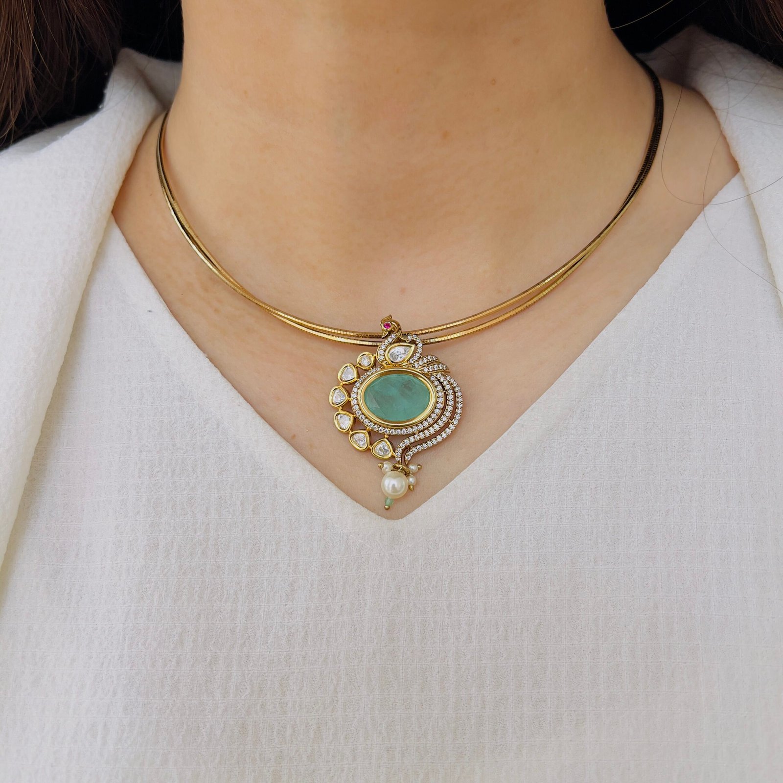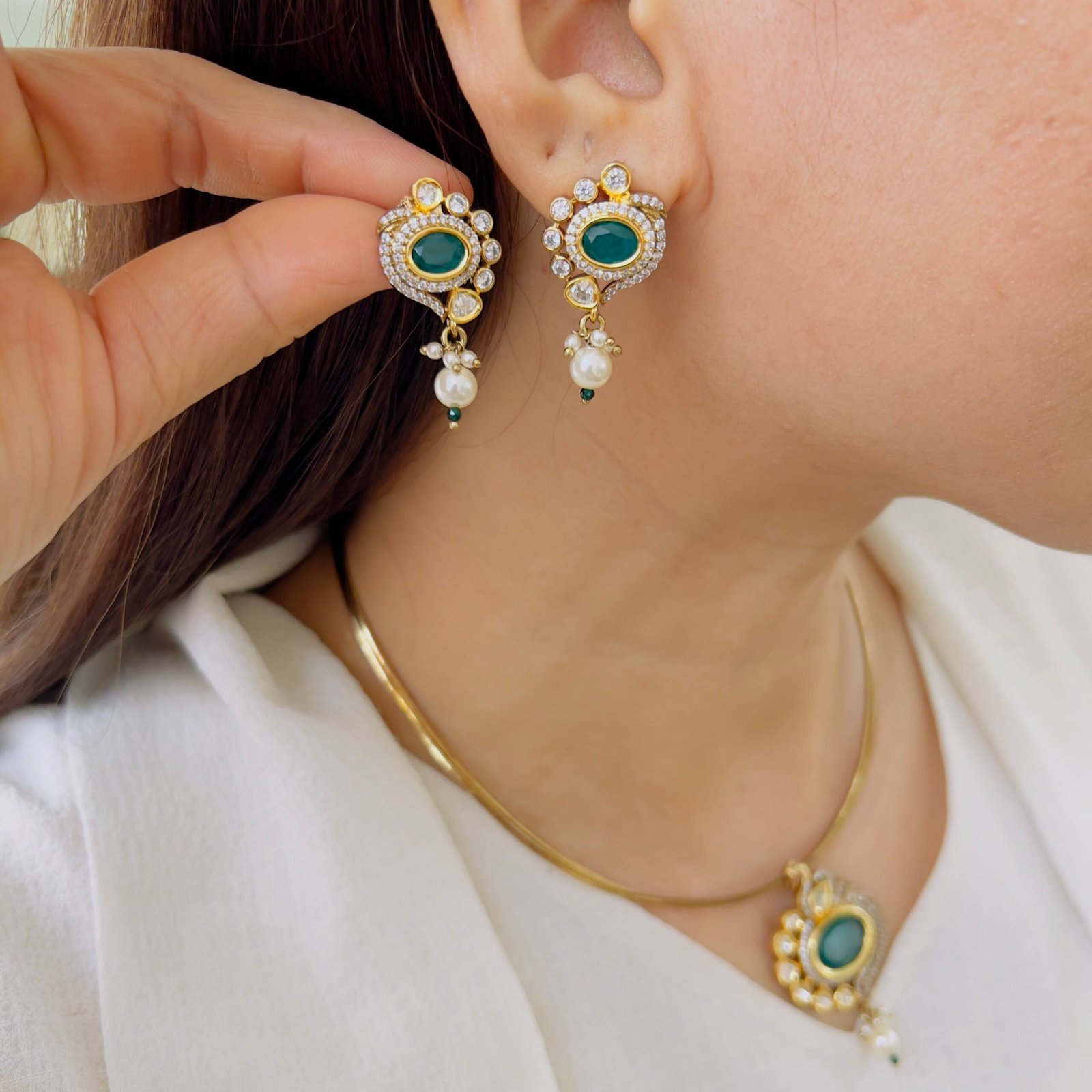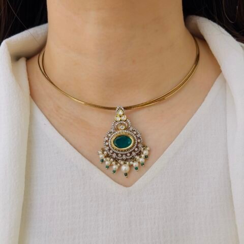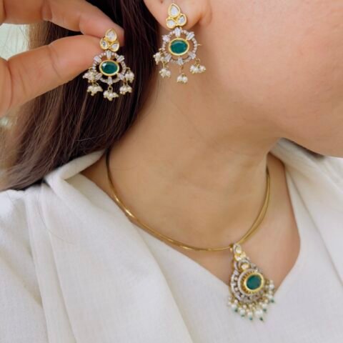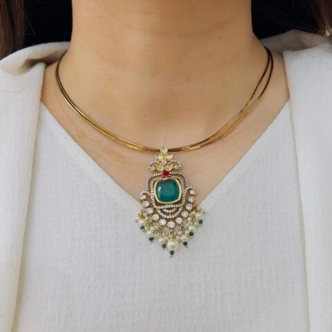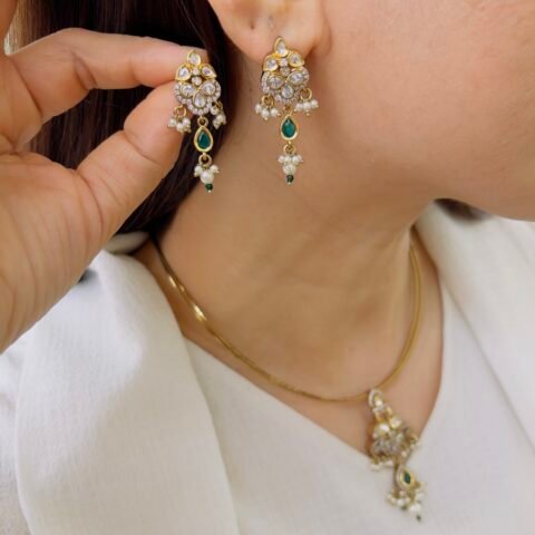Crafted with precision, this pendant set highlights a bold stone design complemented by fine detailing and pearl drops, A perfect pick for effortless elegance and refined styling.