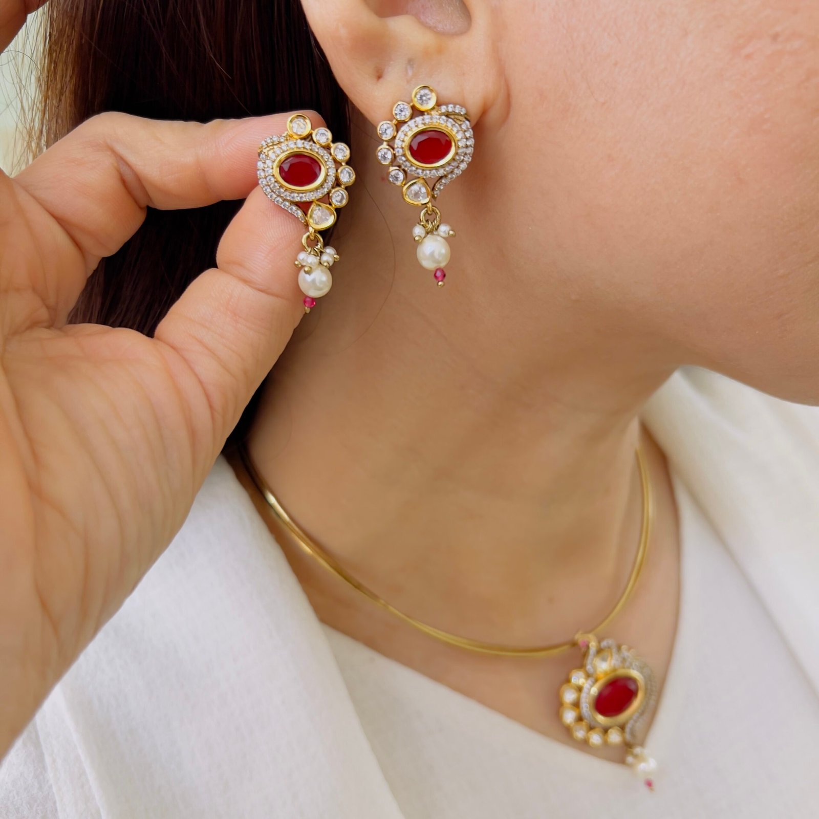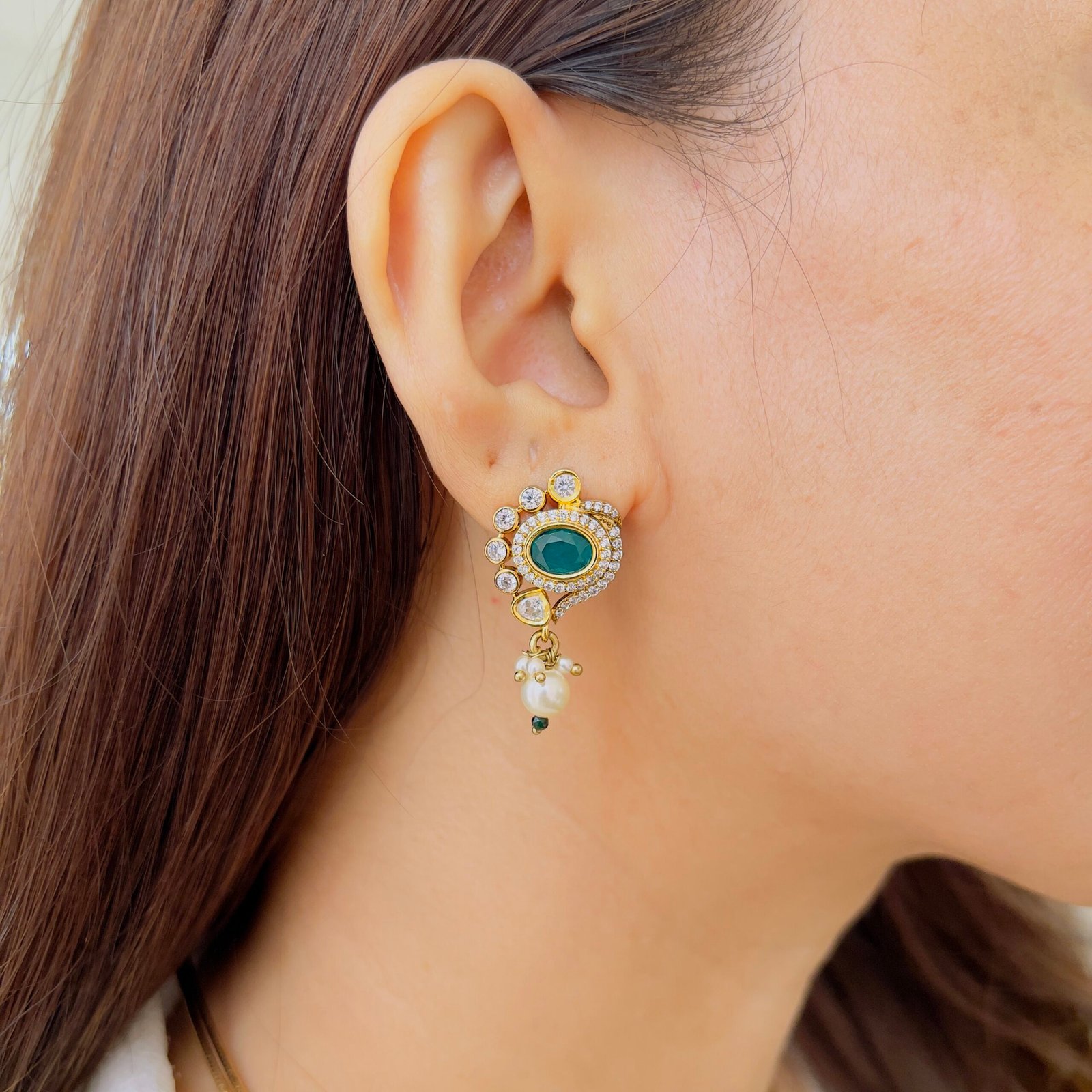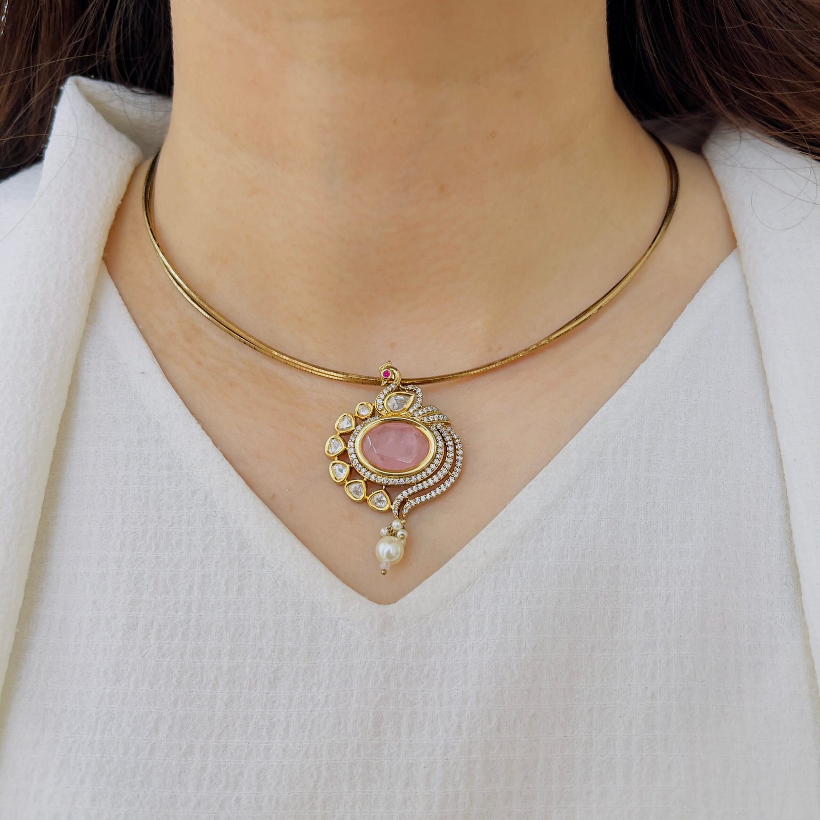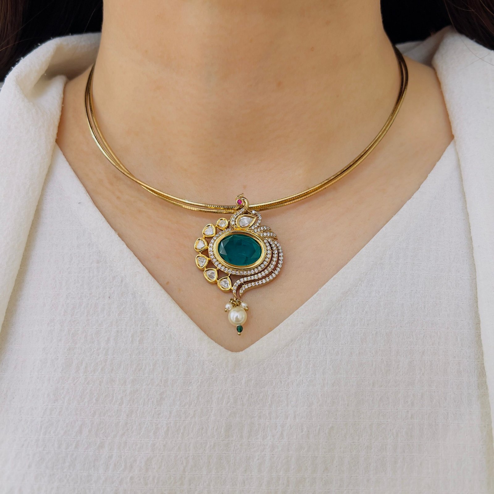 Crafted with precision, this pendant set highlights a bold stone design complemented by fine detailing and pearl drops, A perfect pick for effortless elegance and refined styling.
