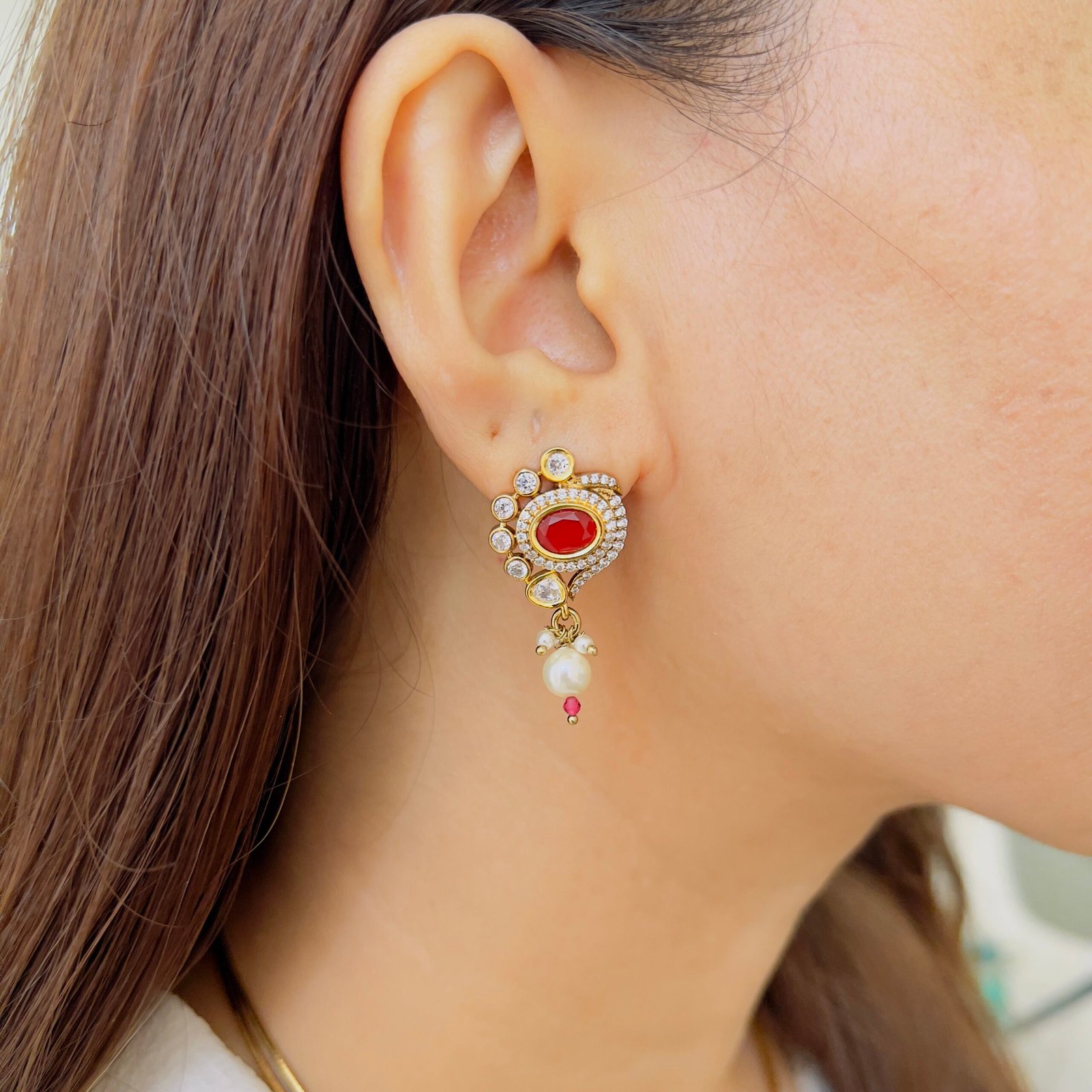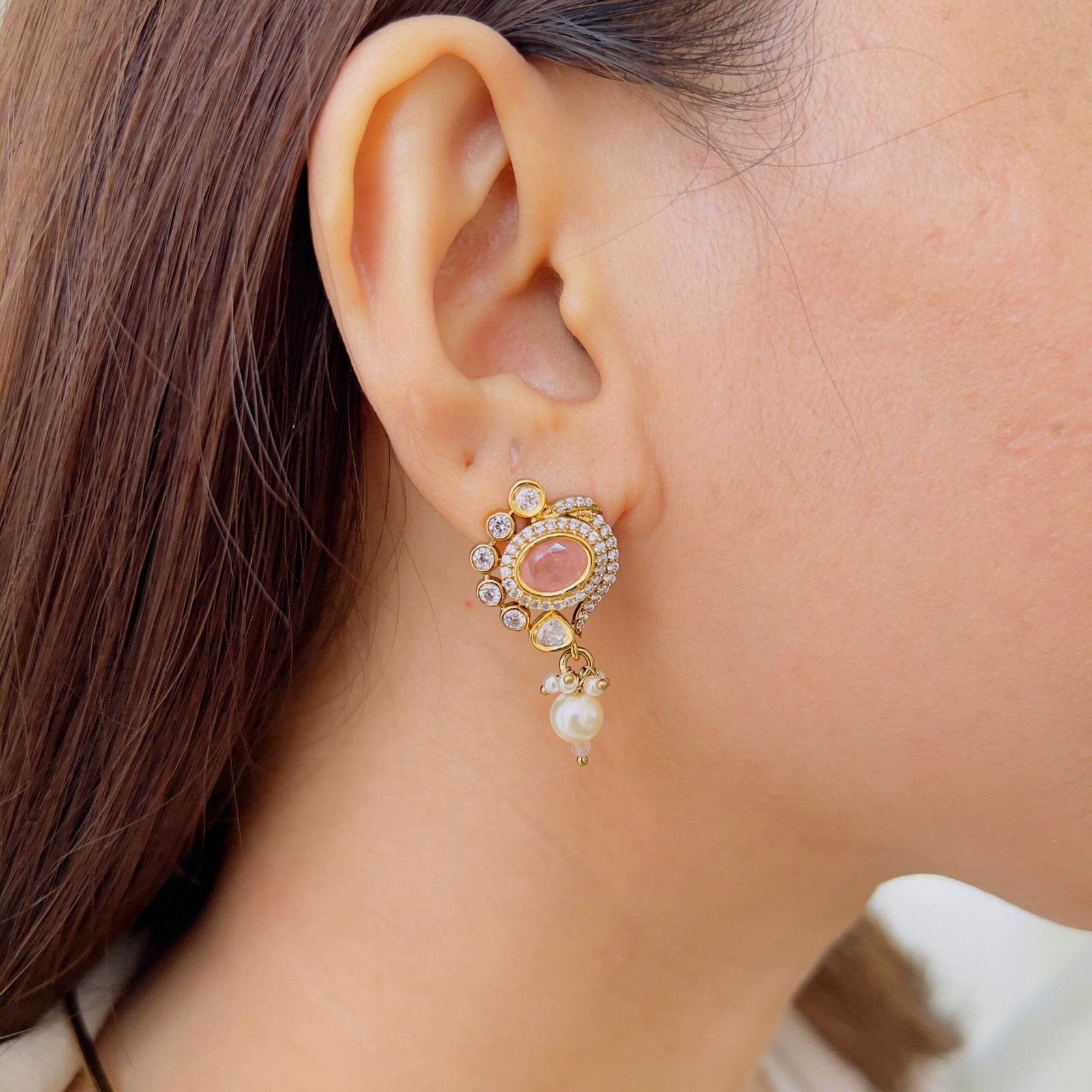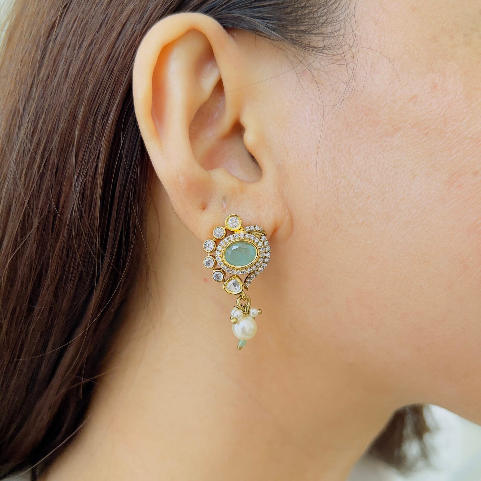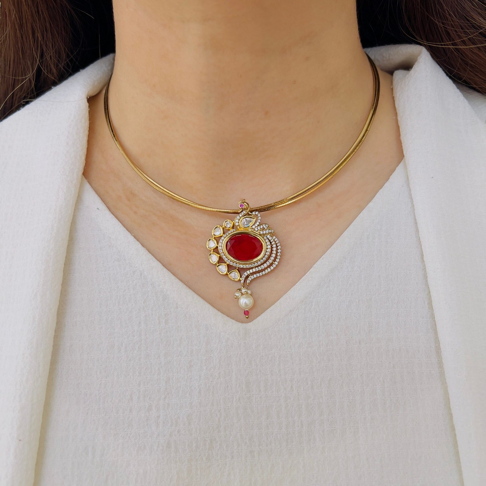 Crafted with precision, this pendant set highlights a bold stone design complemented by fine detailing and pearl drops, A perfect pick for effortless elegance and refined styling.