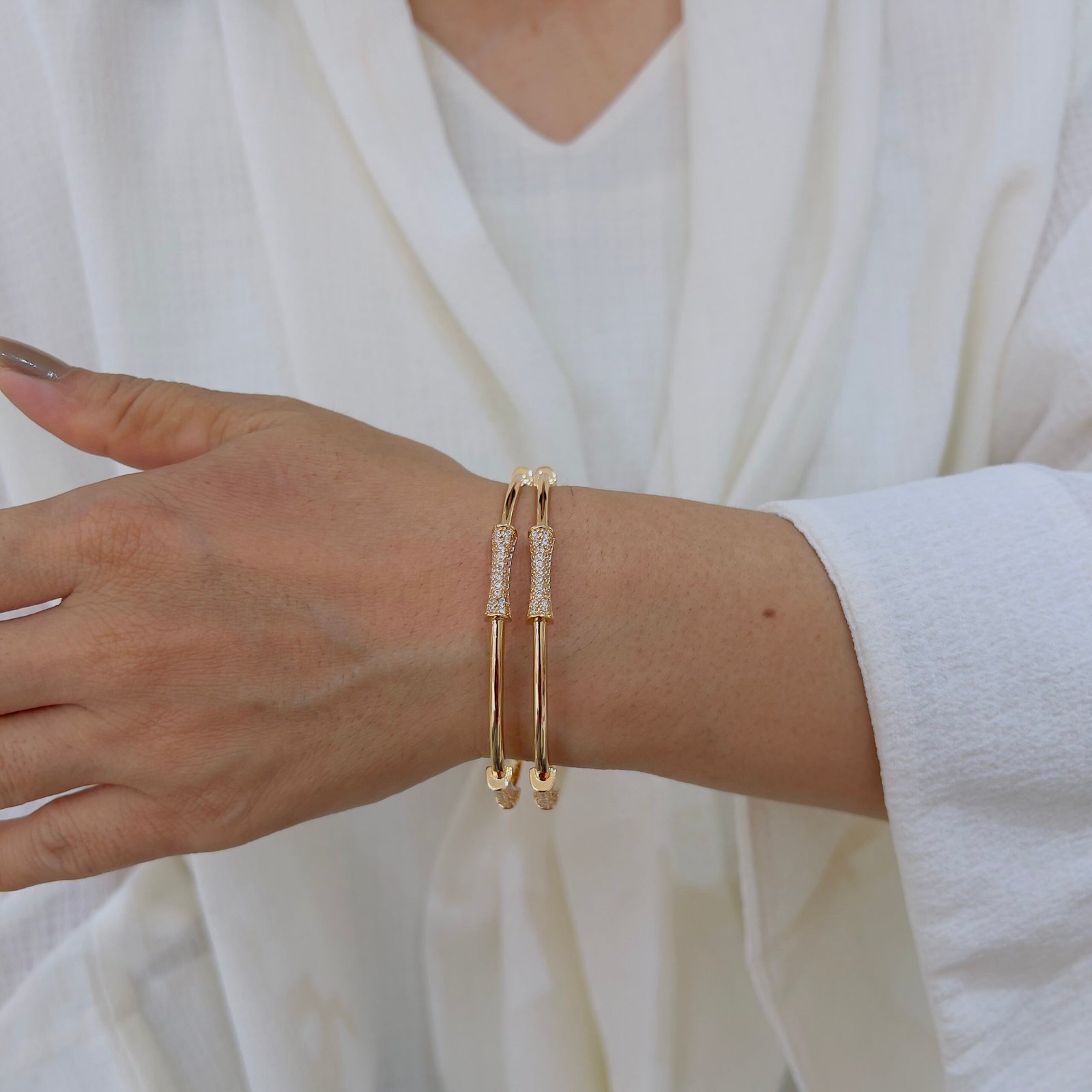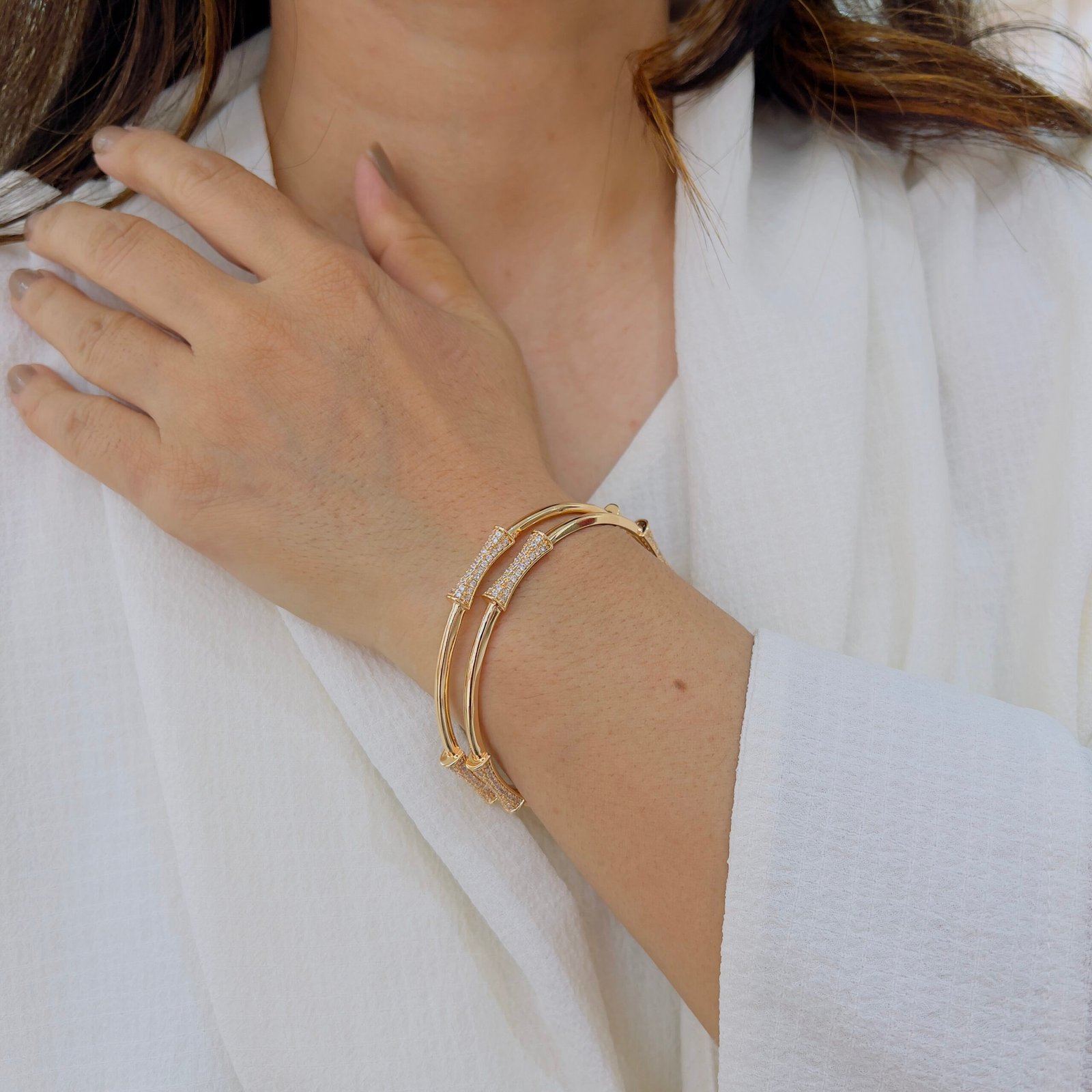 Elevate your daily style with this 18k Gold-Plated Diamond Bangle, Anti-Tarnish, Water Resistant, and built for rough wear — perfect balance of sparkle, strength, and sophistication every day.