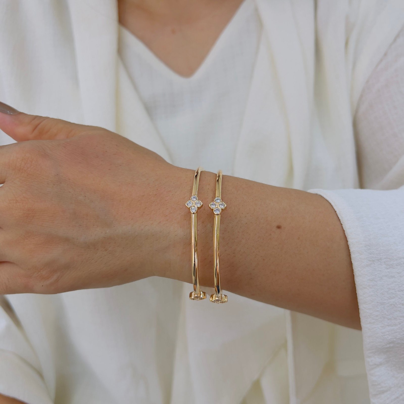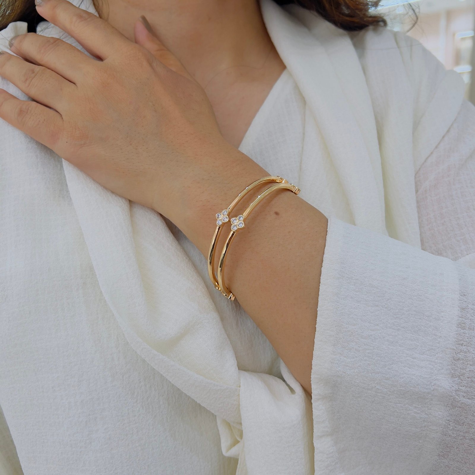 Designed for everyday glamour, this diamond bangle is 18k gold-plated and anti-tarnish, Built for durability, it can be worn roughly without losing its shine—perfect for effortless daily luxury.