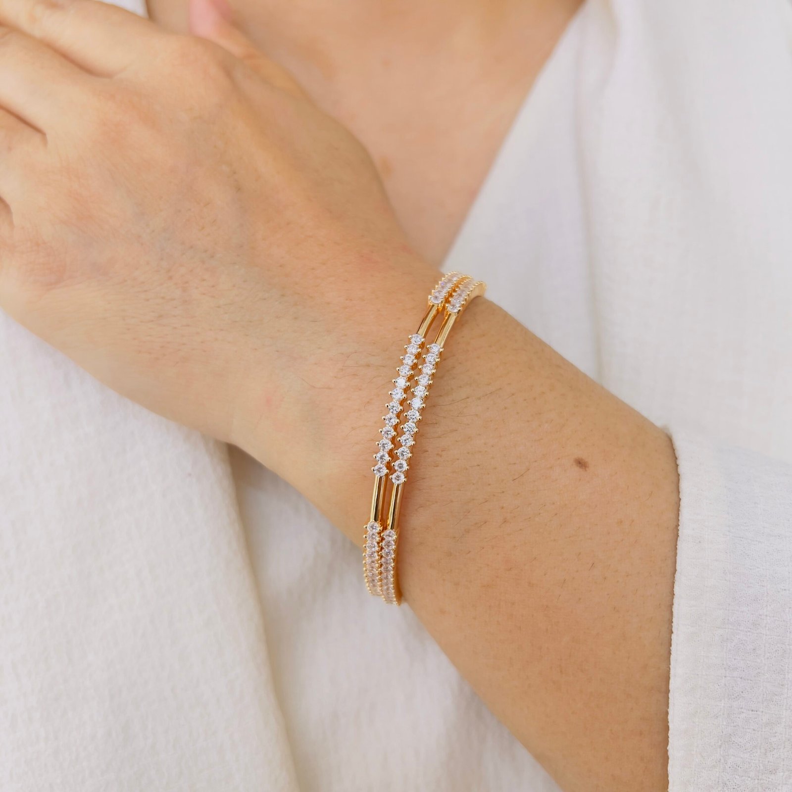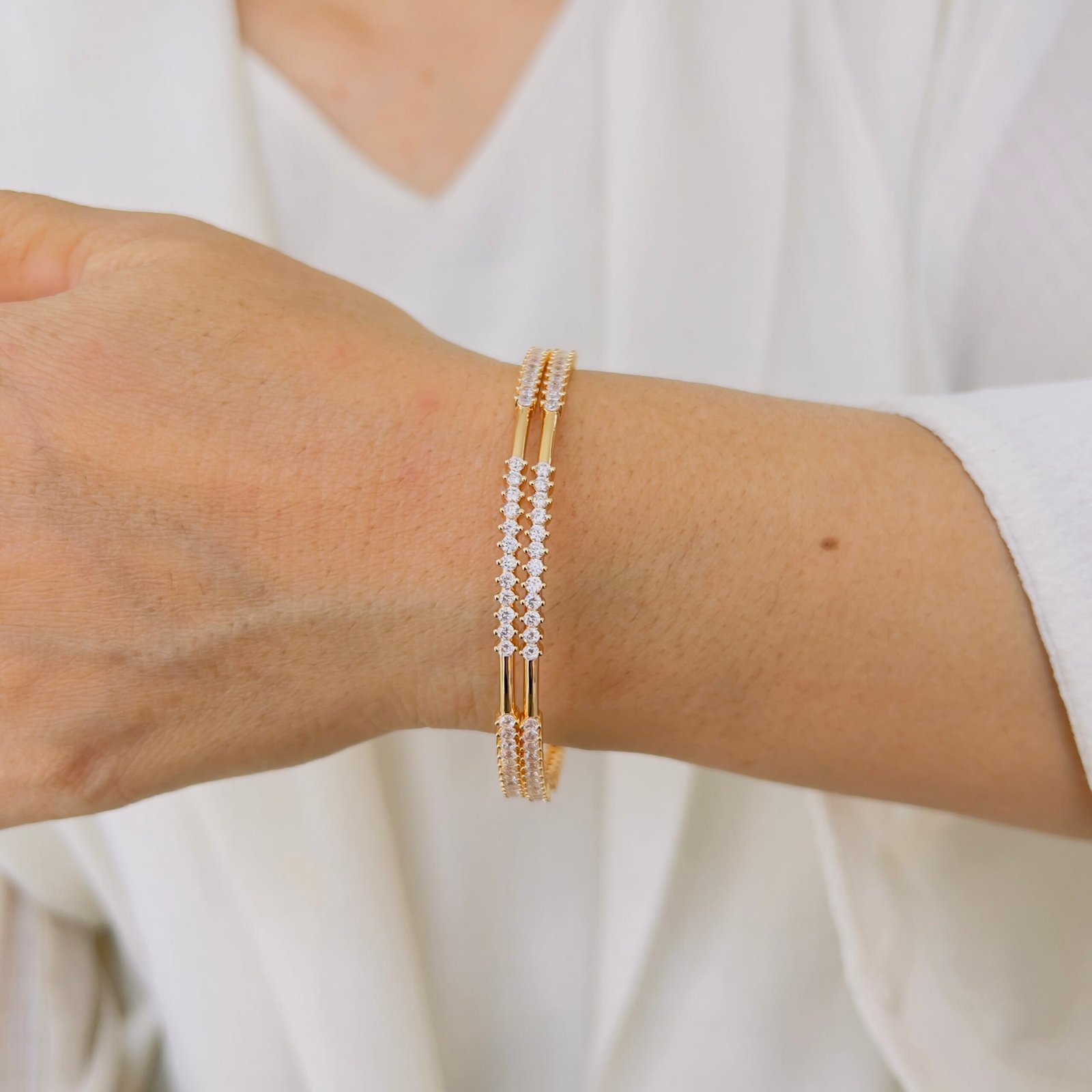 Handcrafted with care, these diamond bangles are anti-tarnish and plated in 18k gold—making them perfect for those who love long-lasting beauty and everyday sophistication.