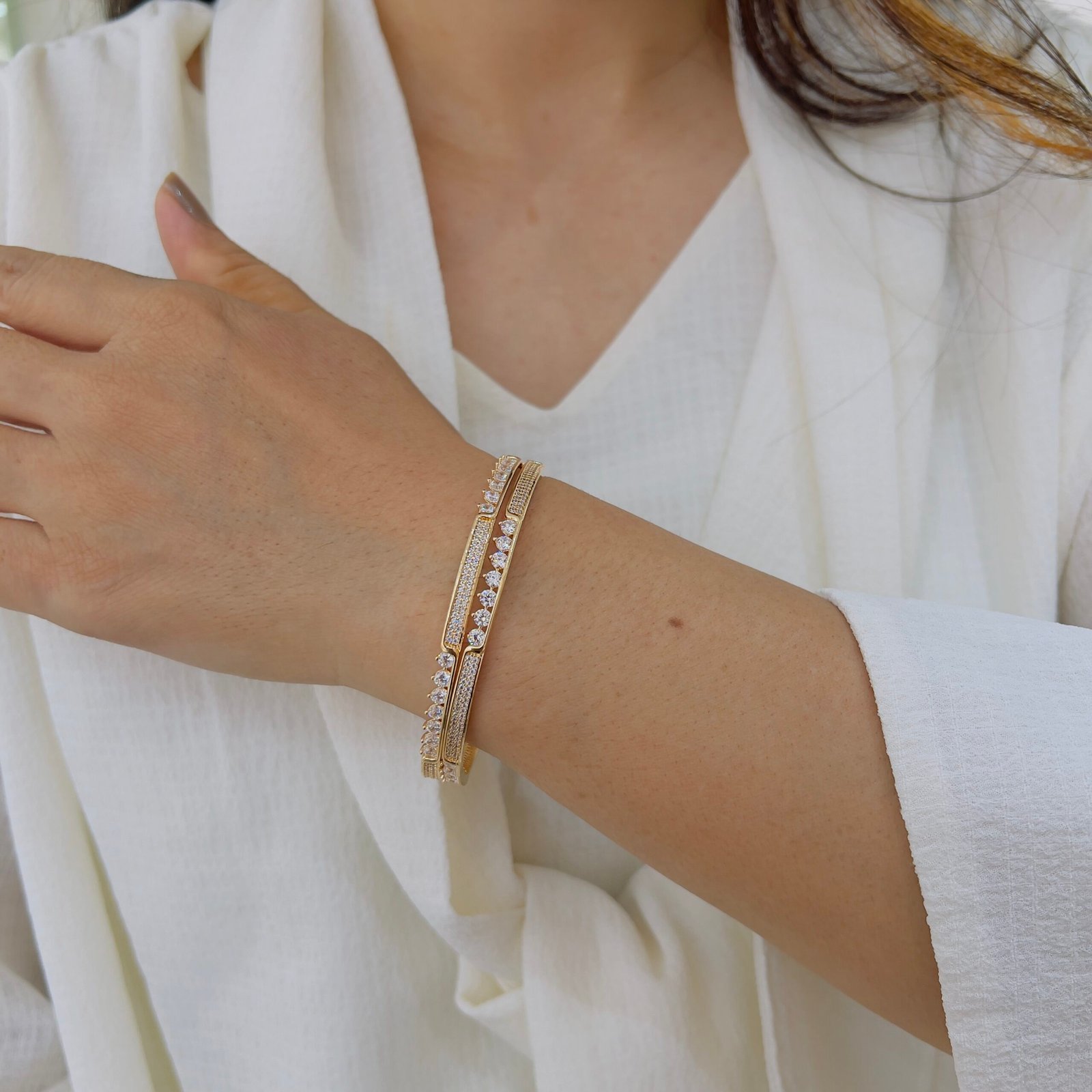 Make every day special with 18k Gold-Plated, Anti-Tarnish Diamond Bangles, Designed for roughly wear, they add sparkle and sophistication to your everyday style.