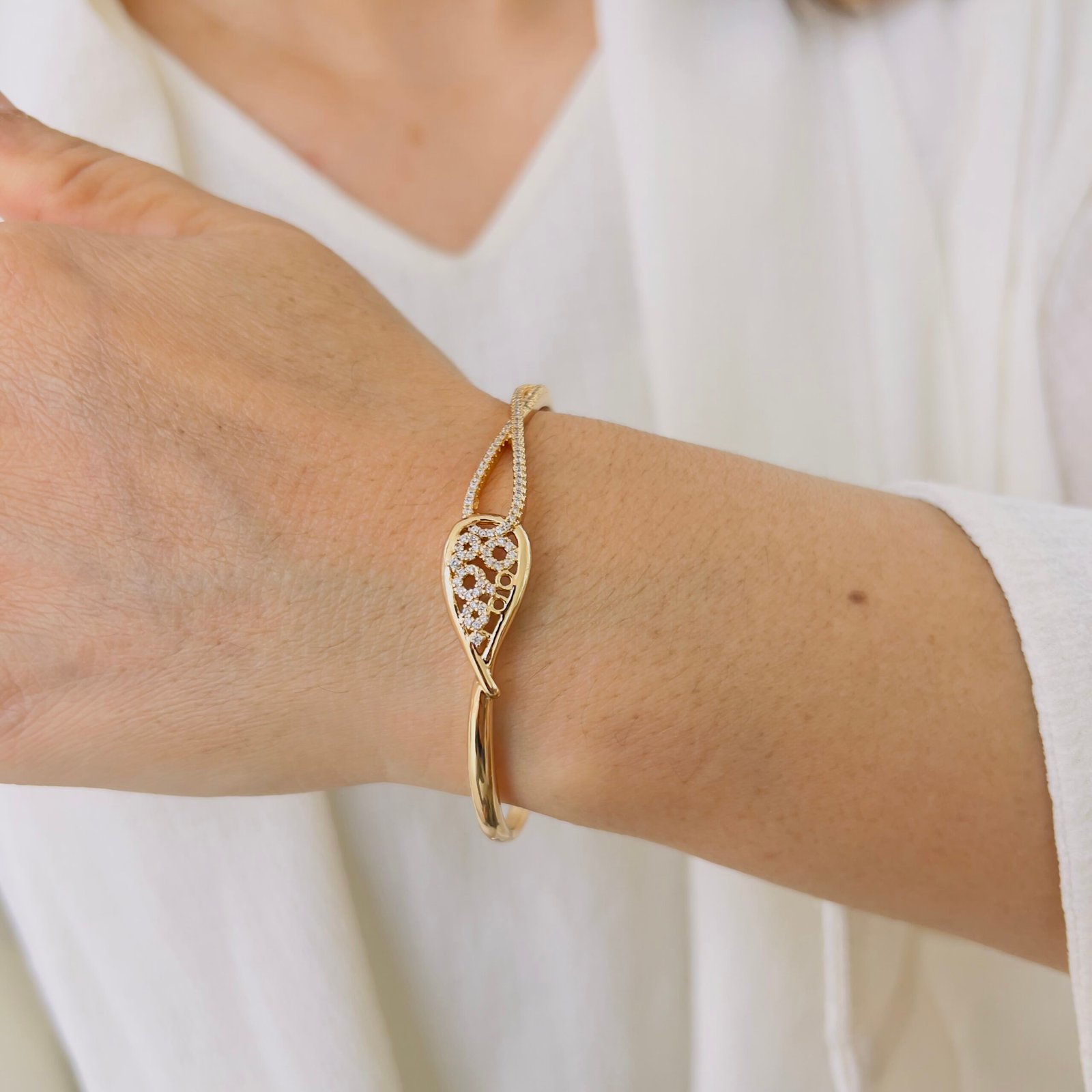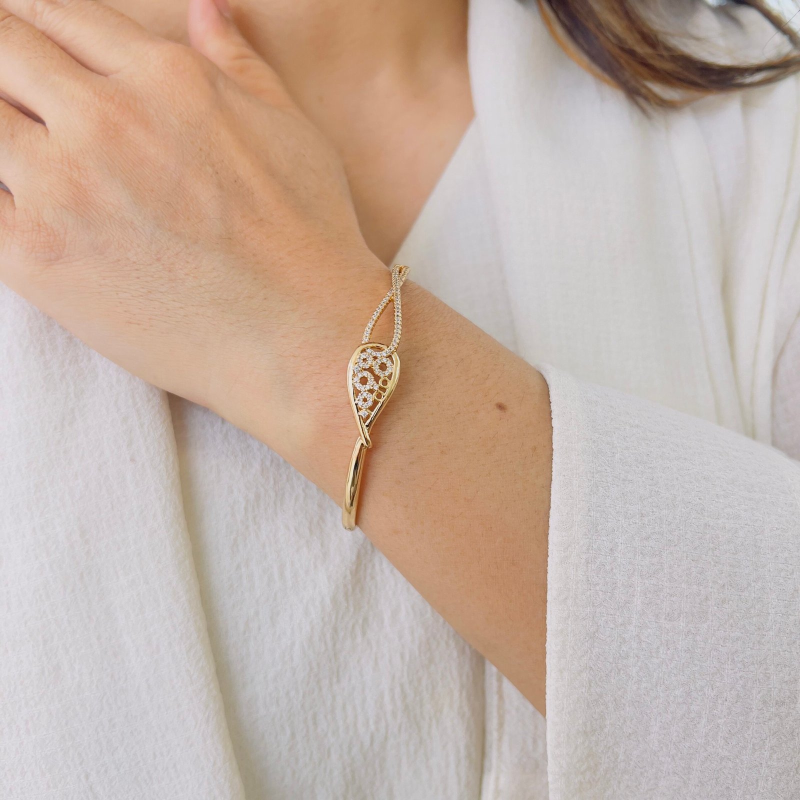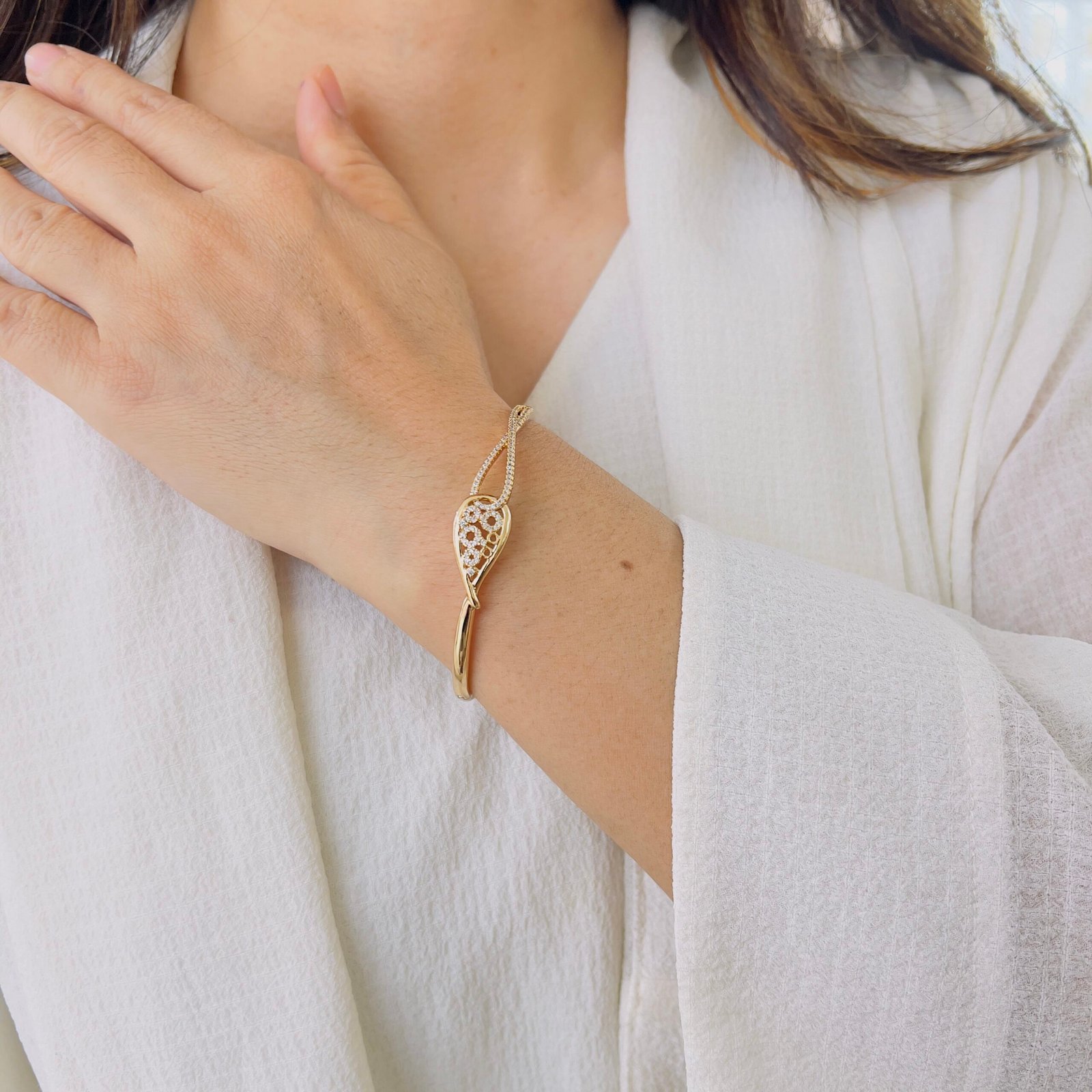 An elegant bracelet crafted with 18K rose gold plating and anti-tarnish protection, Perfect for daily wear, office use, and rough handling while retaining its shine and smooth, comfortable finish.