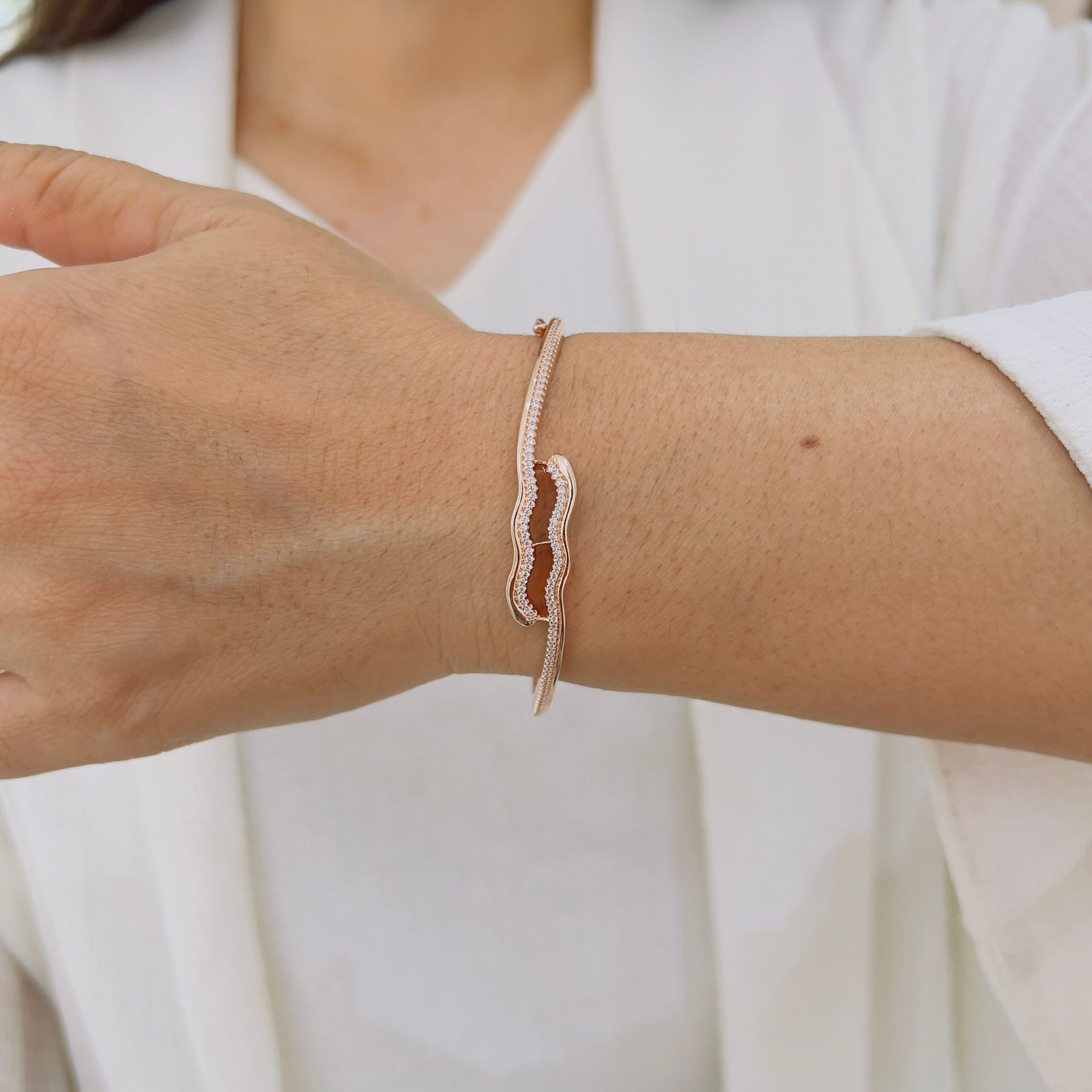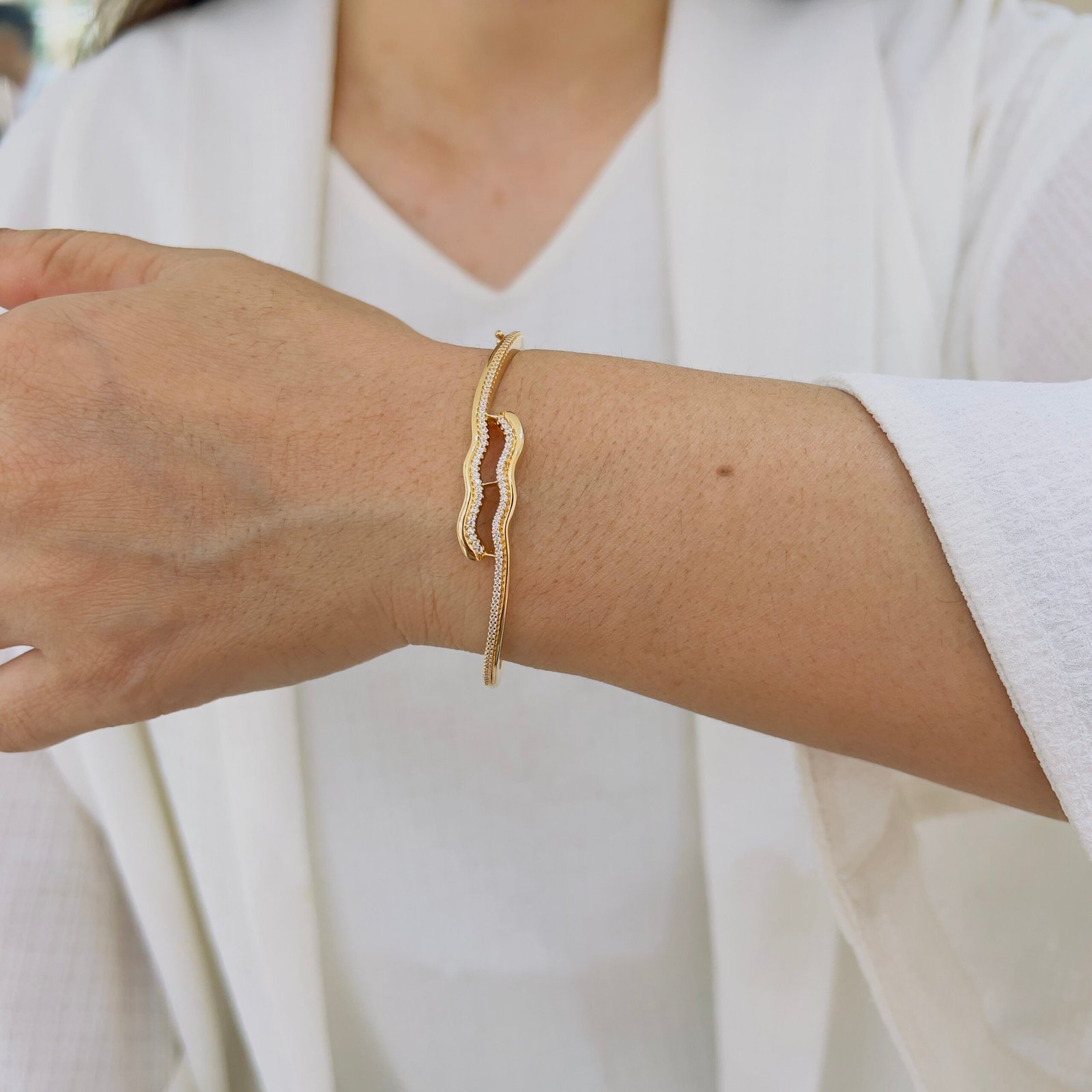 Crafted in premium 18k gold plating, this shiny bracelet is adorned with sparkling American diamond stones. Designed for daily use, it offers a refined look while withstanding regular wear comfortably.