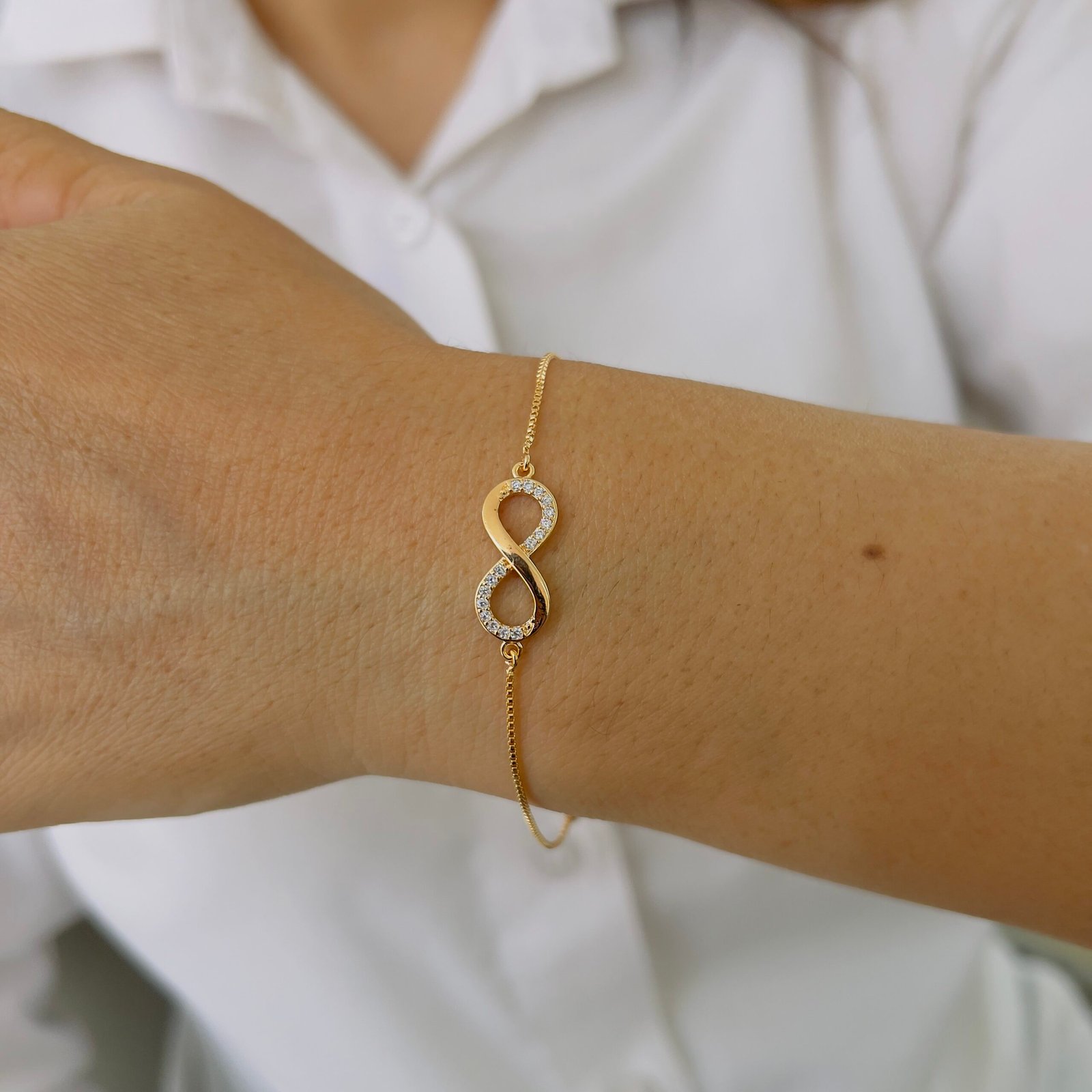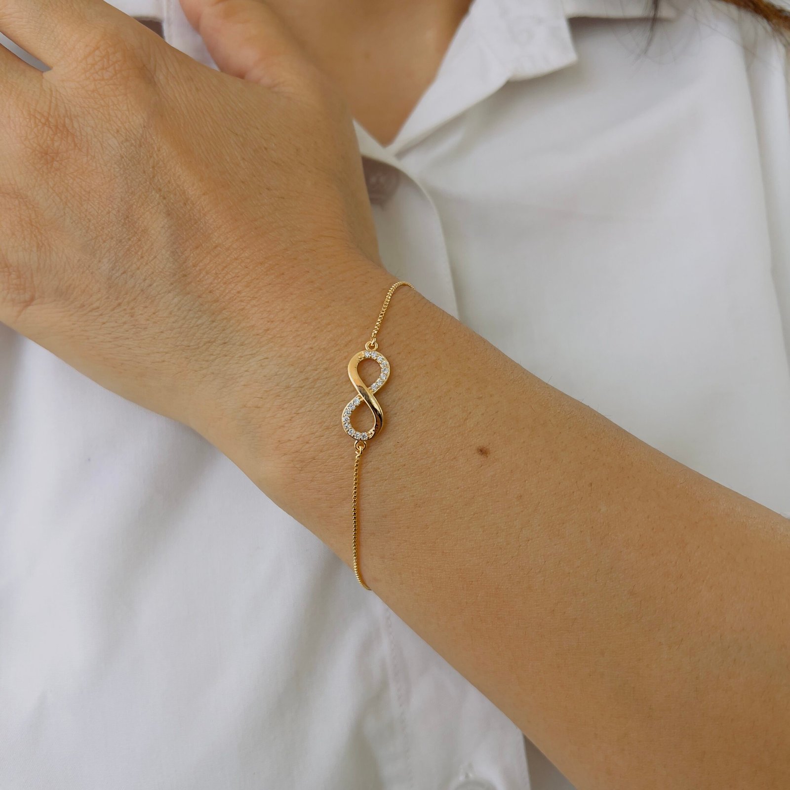 This infinity bracelet features a bold, modern infinity charm crafted with premium 18K gold plating, Anti-tarnish, durable, and perfect for rough use, it adds a stylish everyday look while keeping shine and comfort all day long.