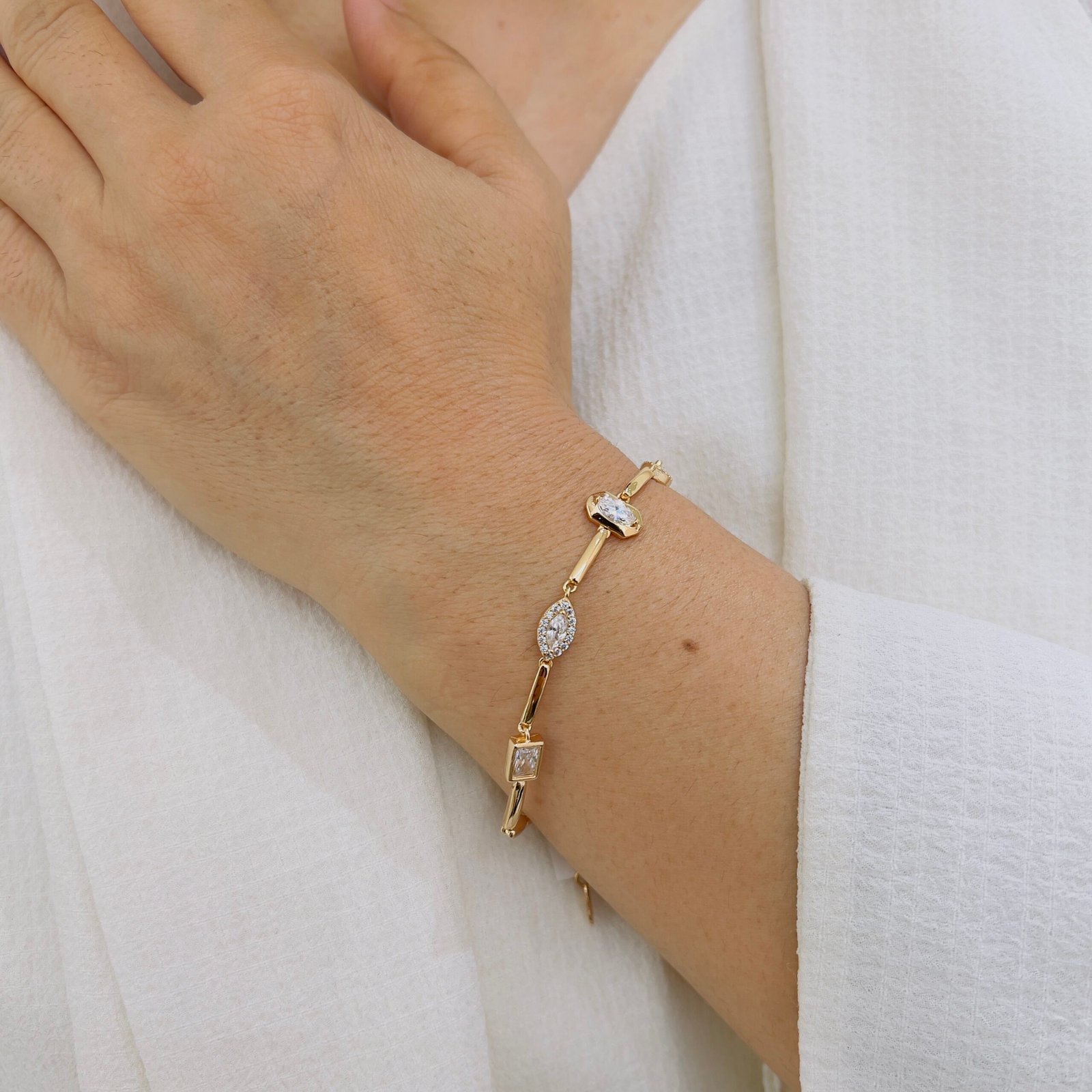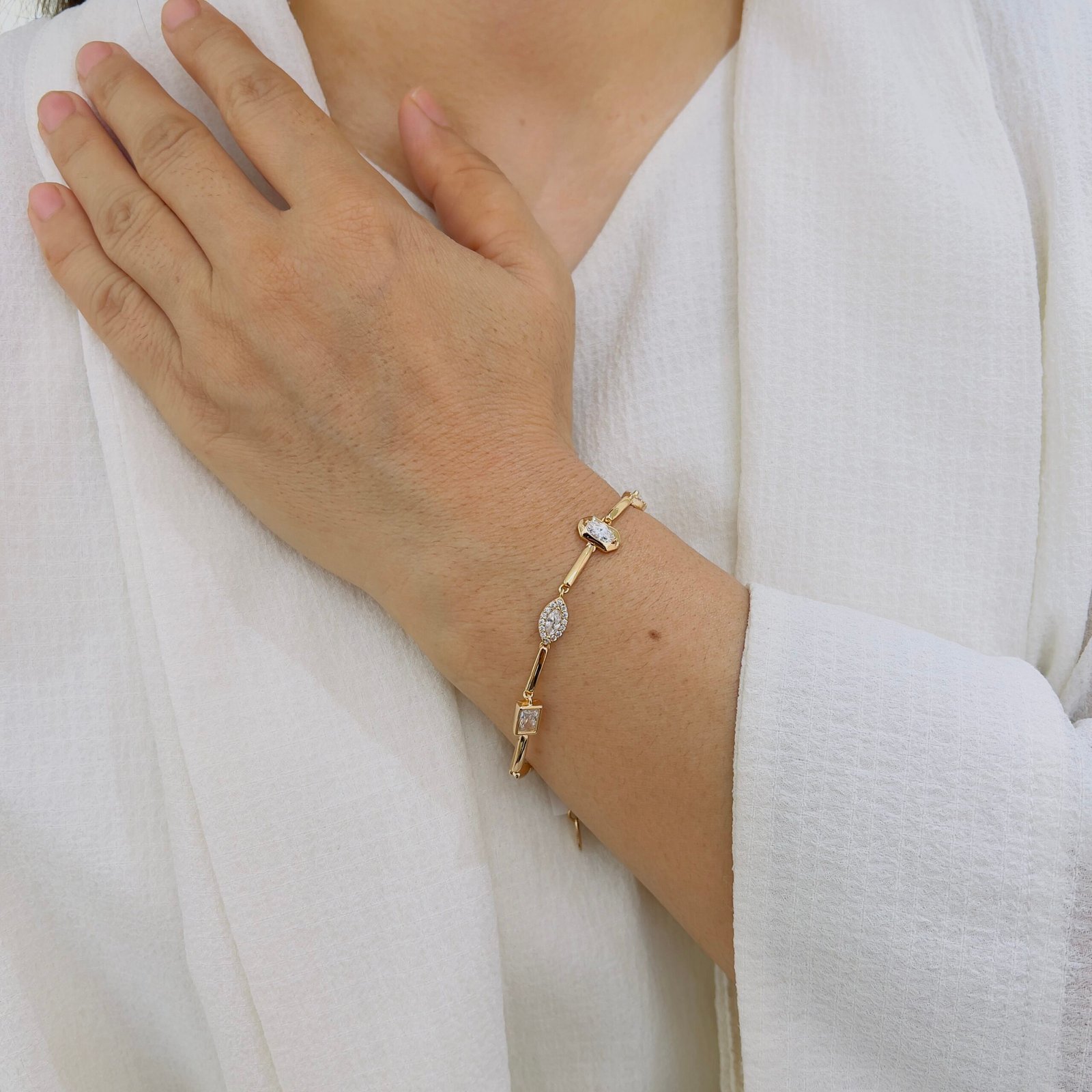 Add a hint of luxury to your routine with this sleek 18K gold plated bracelet, Designed for daily wear, it’s your perfect office companion.