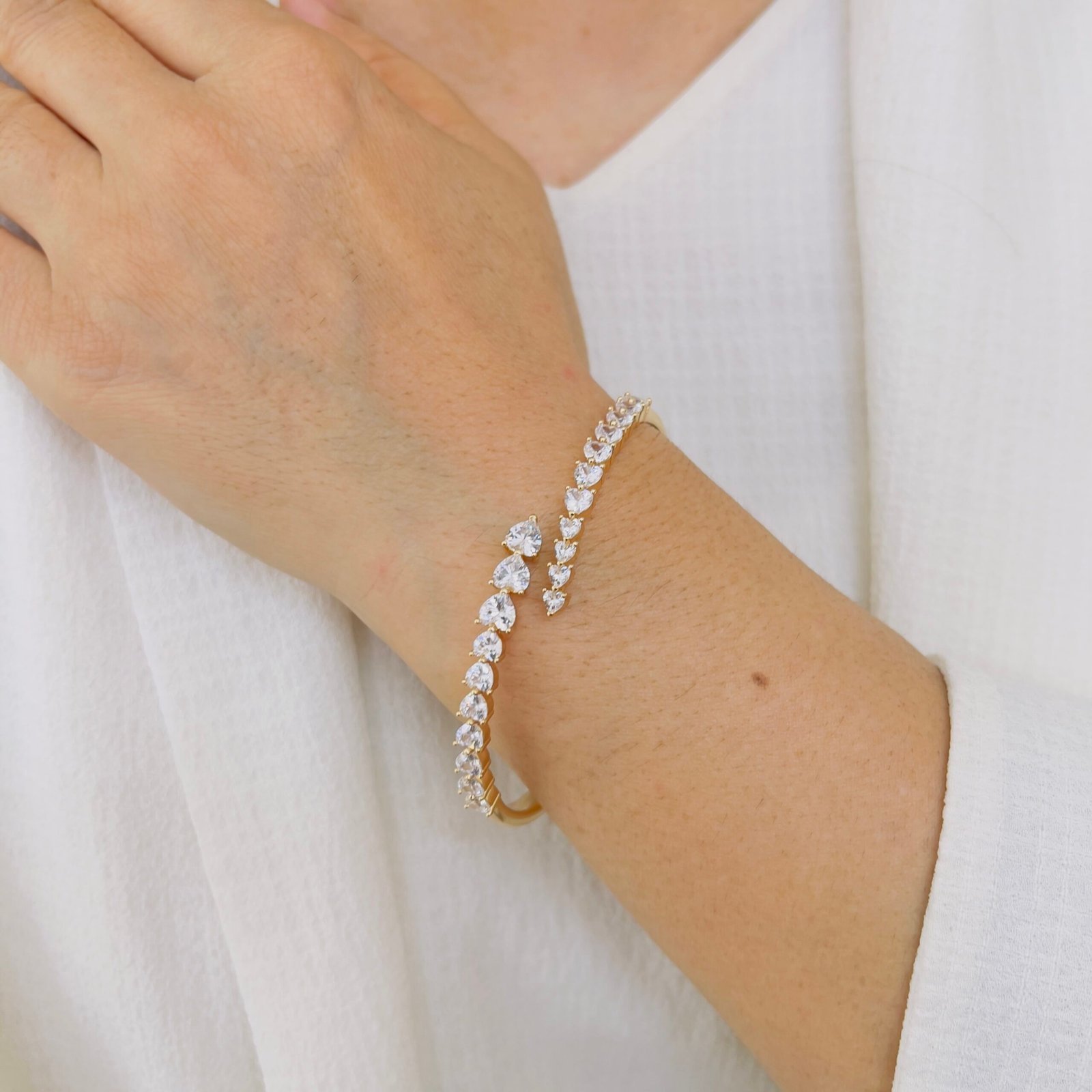 Designed with radiant American diamond stones and 18K gold plating, this bracelet delivers a graceful sparkle, anti-tarnish finish, and durability for everyday wear, office styling, and light rough use.