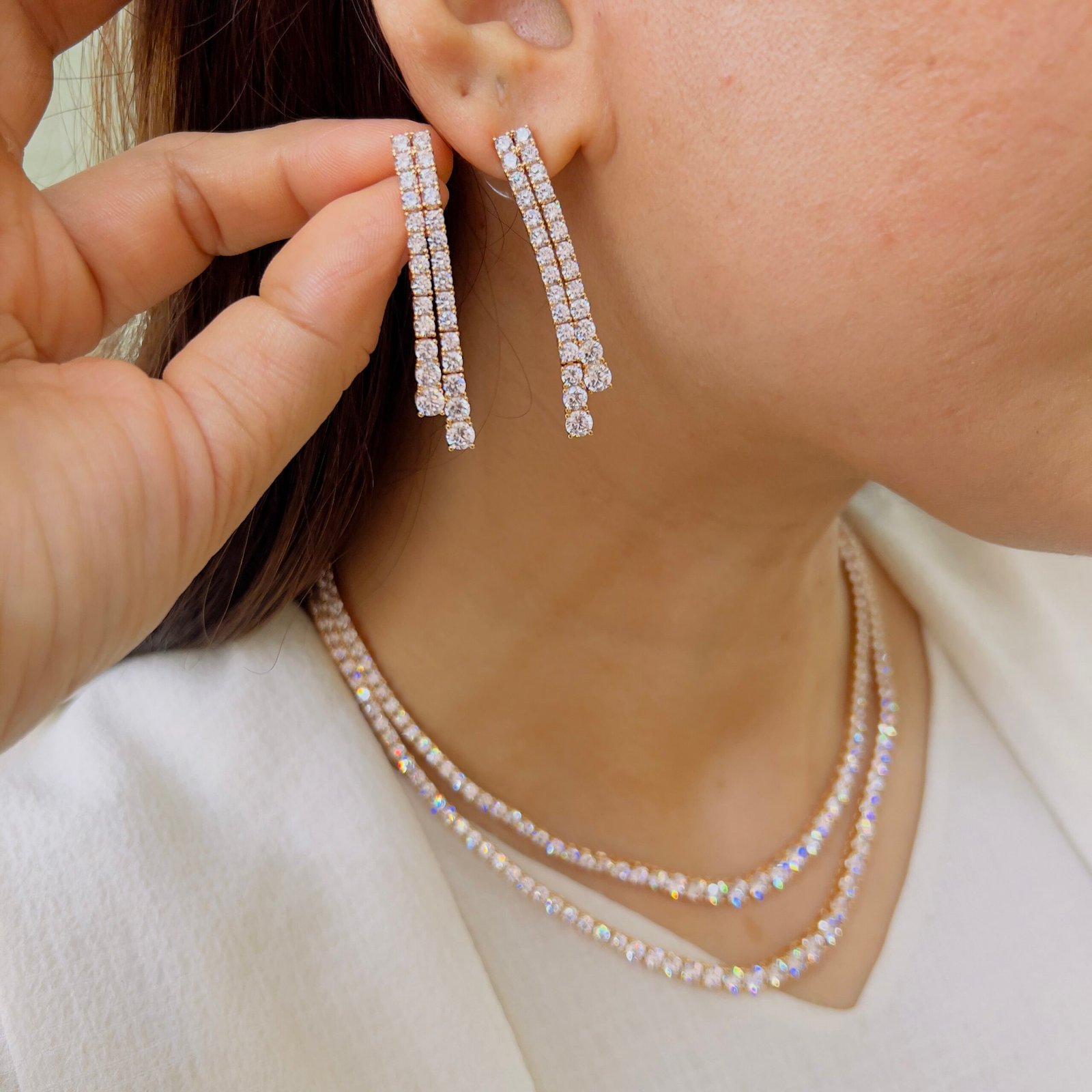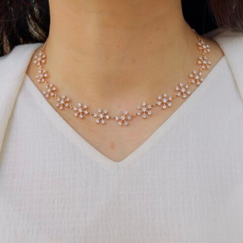 Featuring a delicate arrangement of shimmering stones, this necklace adds a soft yet striking glow, perfect for enhancing your neckline with effortless elegance.