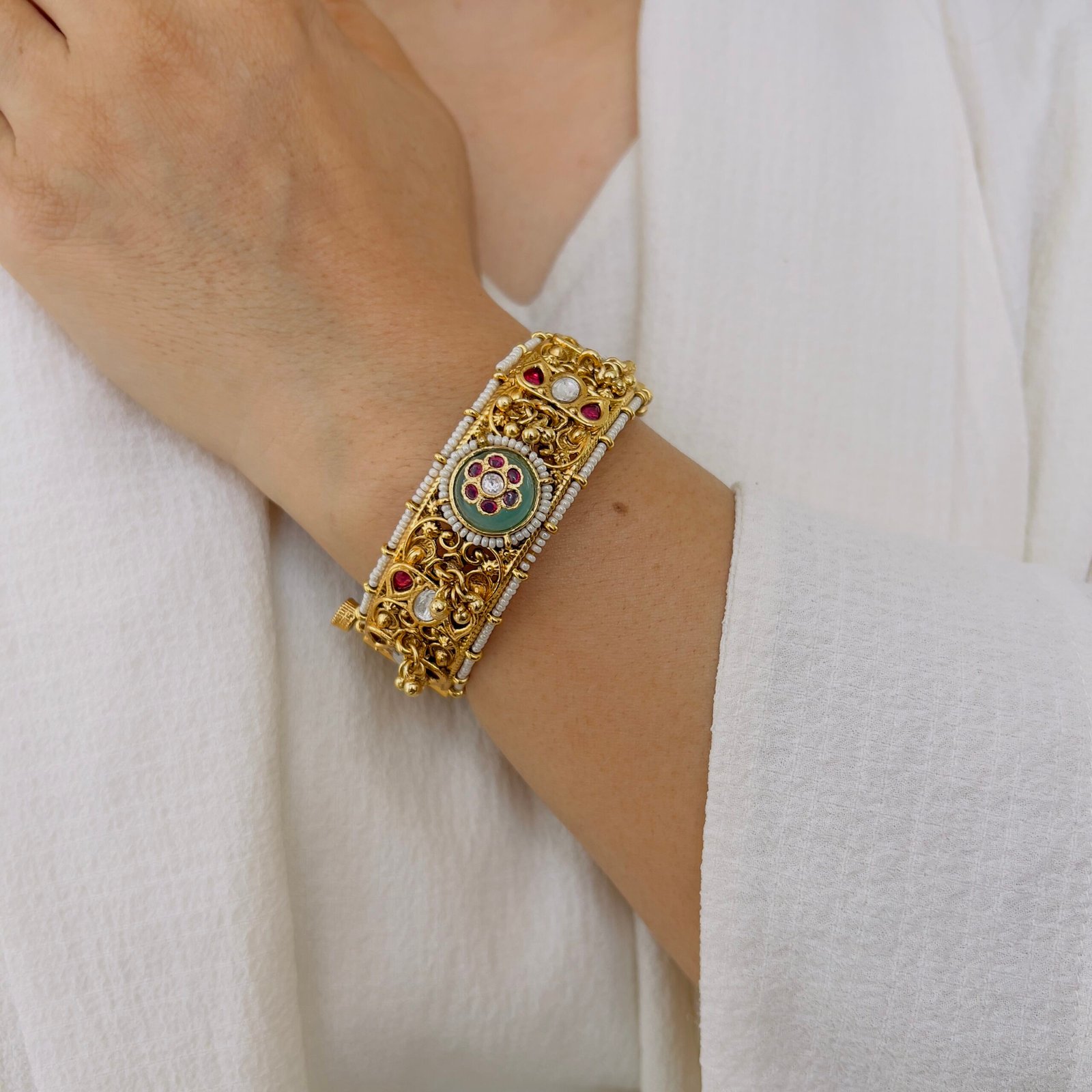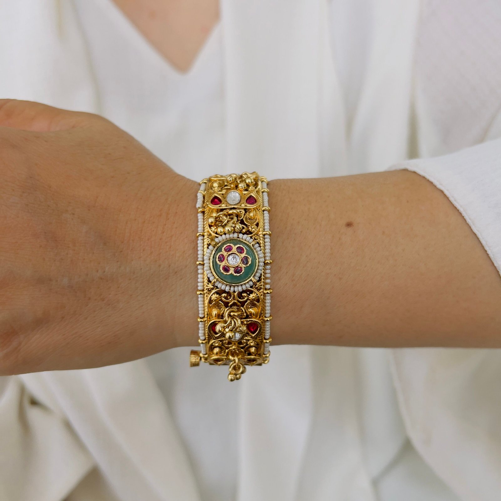 Beautifully crafted with intricate temple-inspired detailing, these bangles bring a rich traditional charm to your look. Perfect for weddings, festive wear, and elevating your ethnic outfits with grace and elegance.