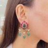 Beautifully crafted Jadau earrings with intricate floral detailing and delicate hanging beads, Designed to give a royal ethnic look, making them perfect for festive occasions, weddings, and traditional celebrations.