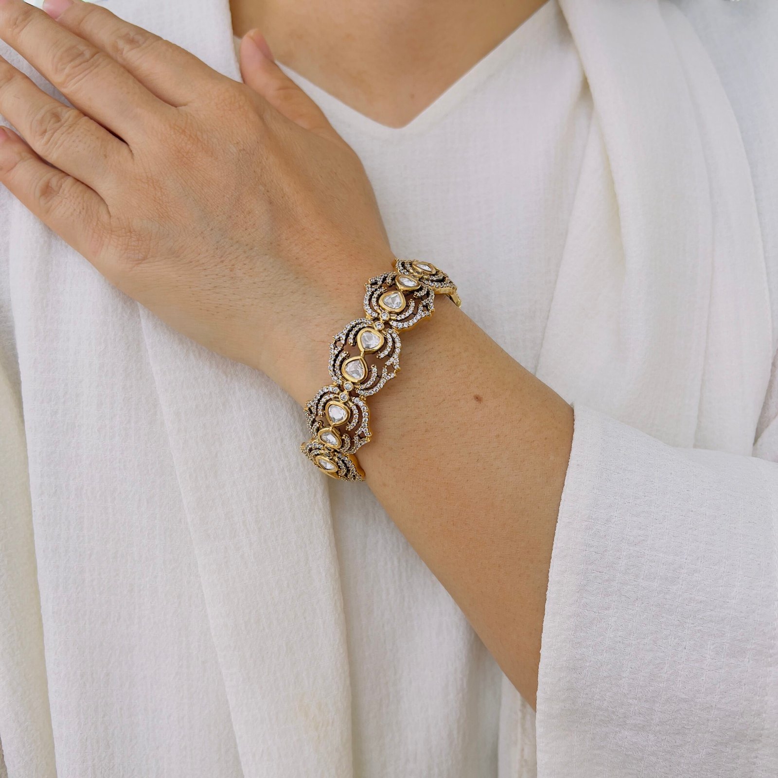 Crafted with deep ruby hues and detailed Victorian artwork, this bangle reflects timeless heritage appeal, making it a beautiful choice for cultural events and classic ethnic wear.