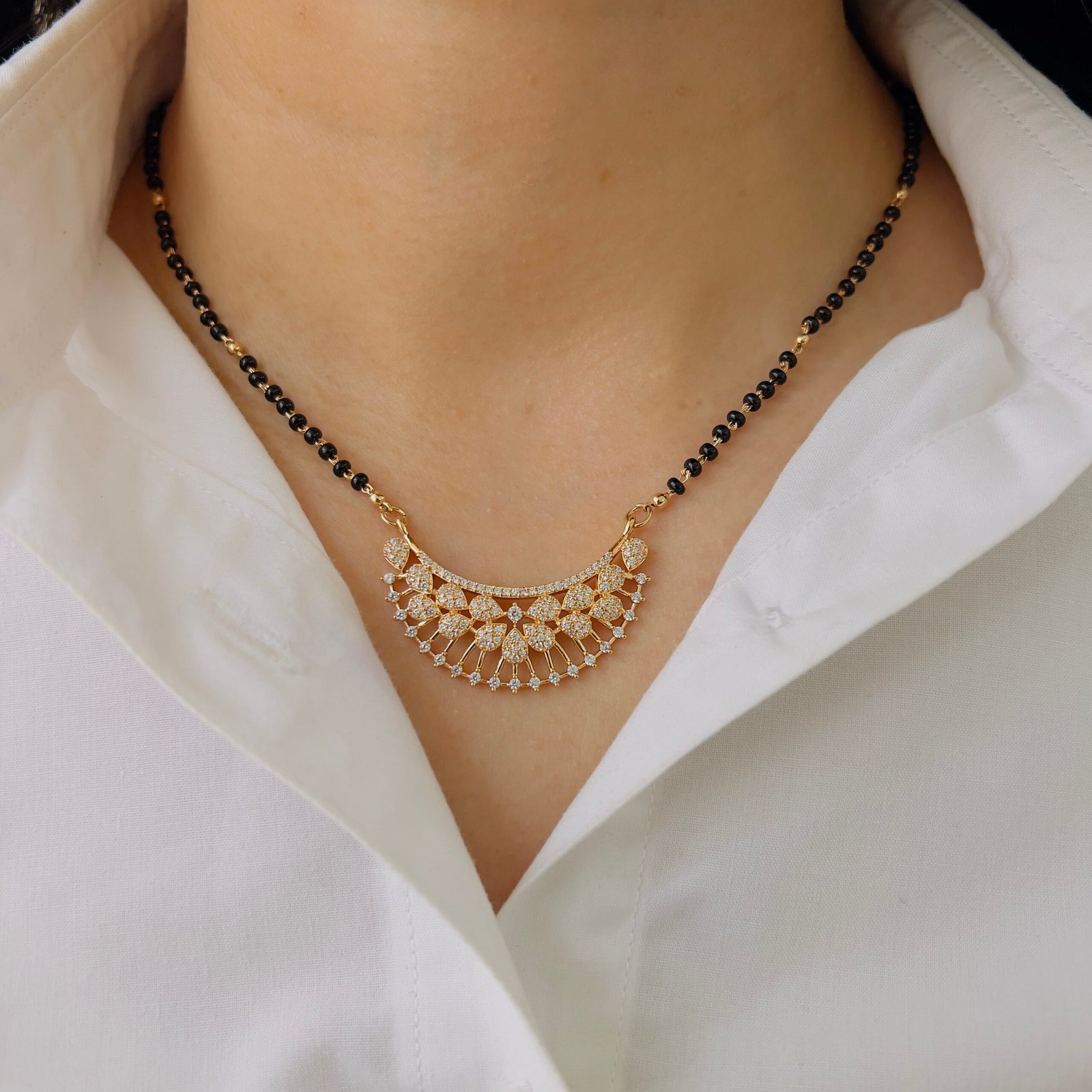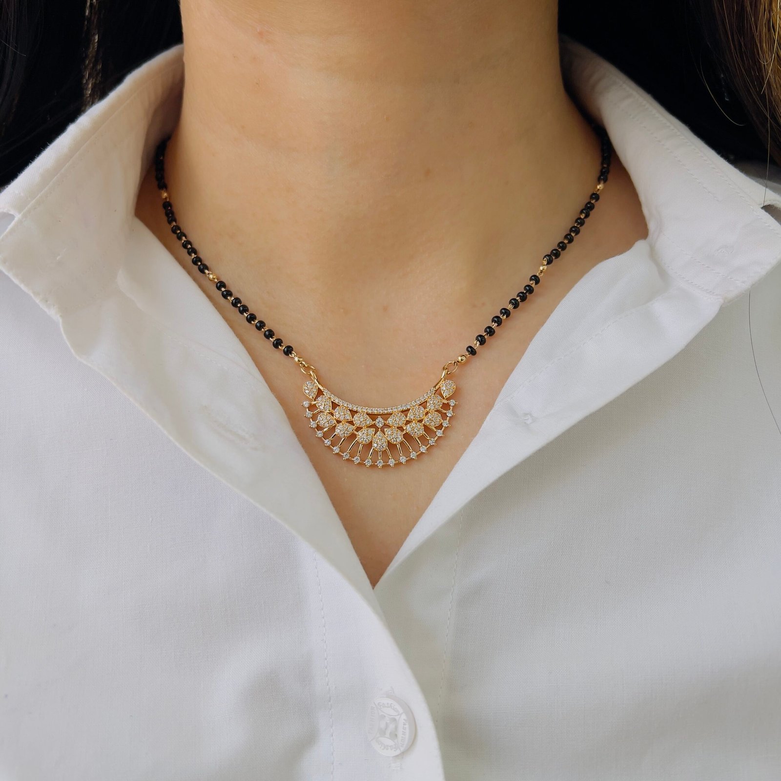 Add charm to your look with this 18K gold plated mangalsutra, Featuring shiny stones, anti-tarnish coating, and built for rough use—it’s both beautiful and durable.