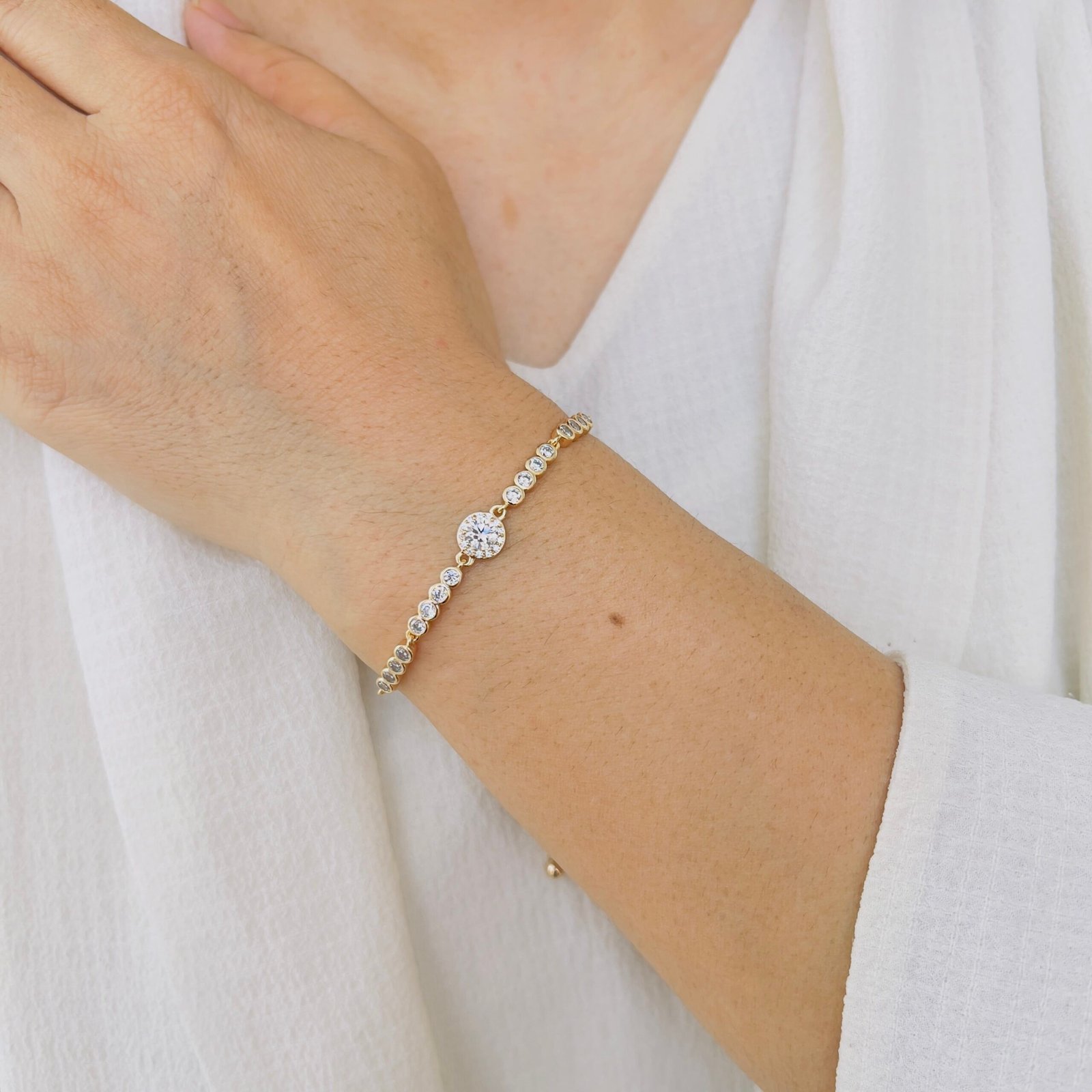 Designed for modern lifestyles, this 18K gold plated bracelet features bright stones and anti-tarnish protection, Comfortable for daily and office wear, it stays shiny even with frequent rough use.